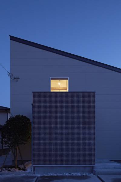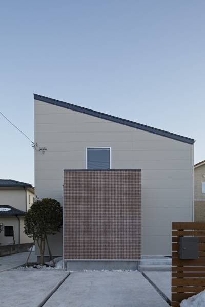 郊外に建つ、木造2階建ての専用住宅です。