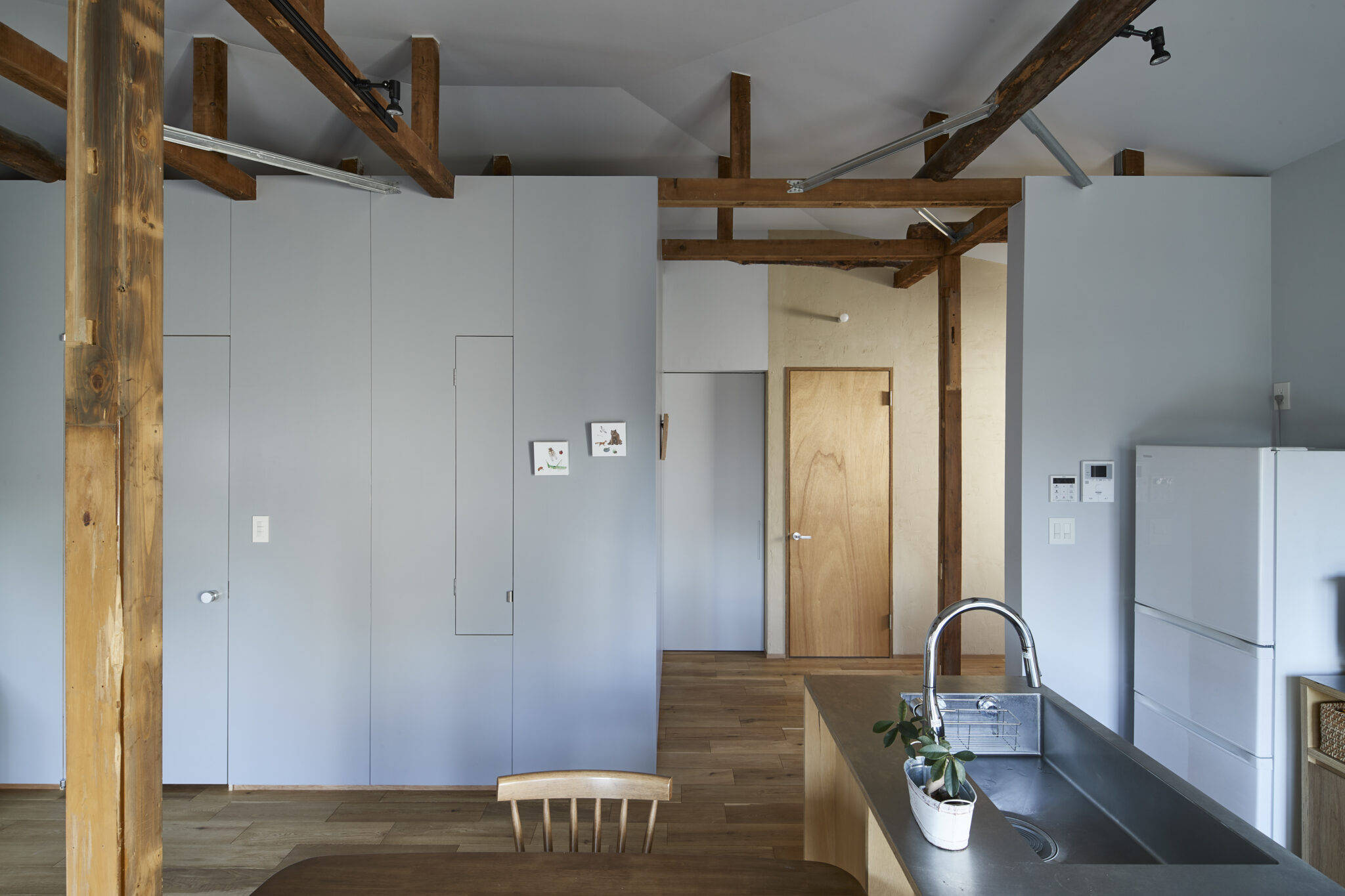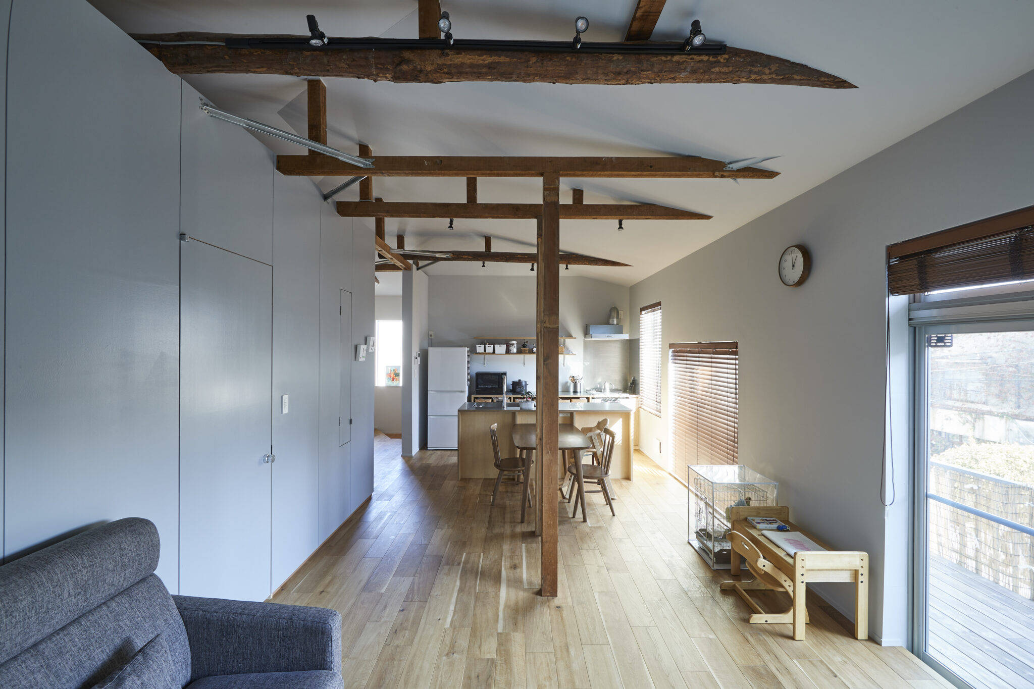 その為水回りや部屋割りなどプランを一新する必要があったが、構造形式を調査をすると小屋組みの梁成が細く柱の撤去が困難なことが分かった。