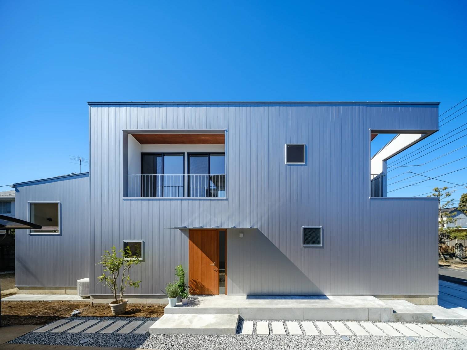 コーナー開口のあるシルバーの家