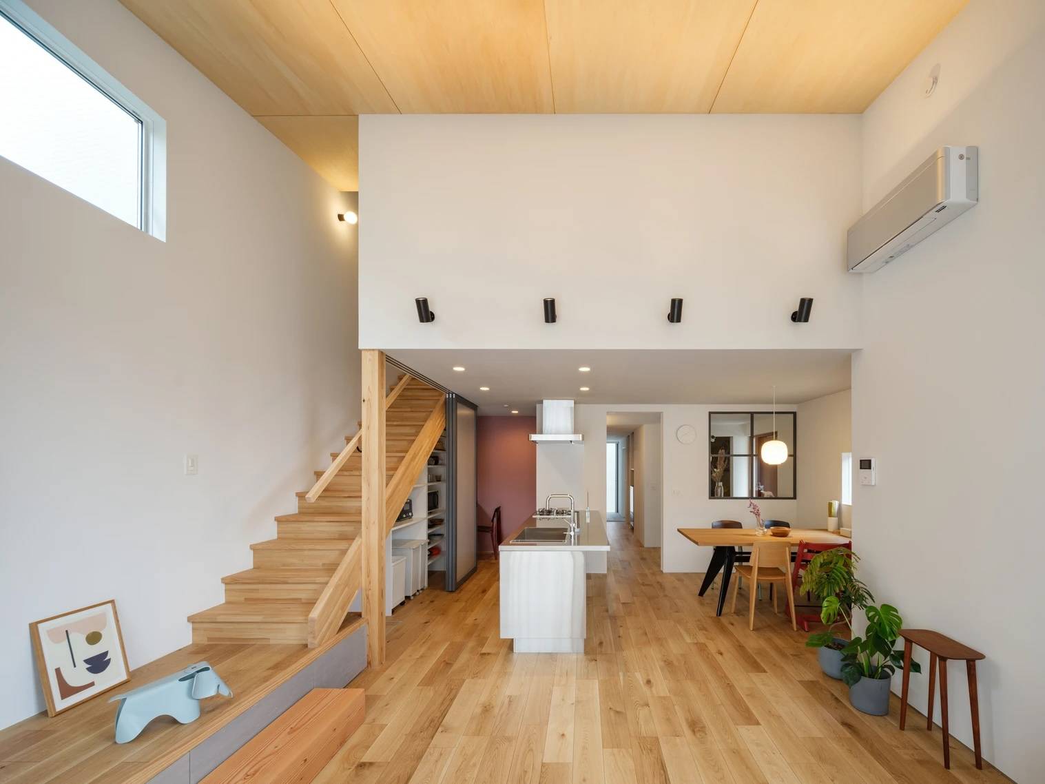 竣工後に訪れた際、南のテラスから隣のお子さんが自由に出入りする微笑ましい様子が伺えた。