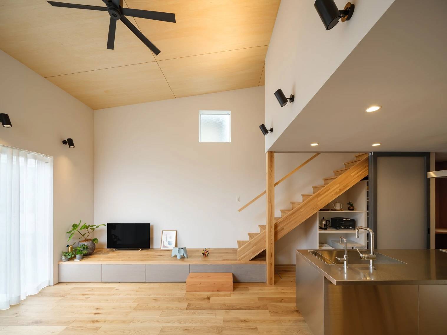 水回りを明るく風通し良くしたいという奥さまと、独立したワークルームがほしいという旦那さまの要望を実現しながら、環境や親族と豊かに関わり合うための家について考えた。