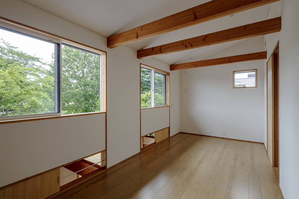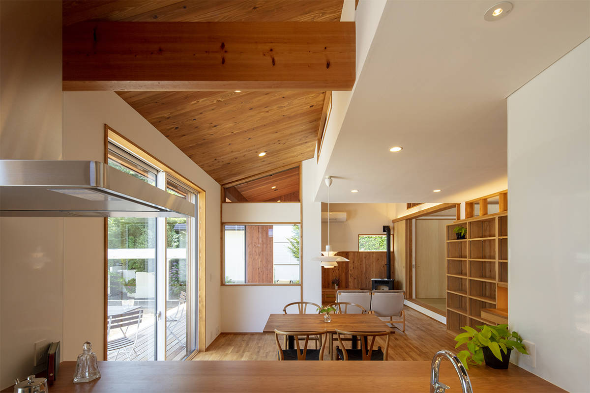 公園を望む2階のリビングキッチン、居室を静かな2階への配置。インナーテラスを配置するアウトドアリビングと1階リビングキッチン、自然、庭、公園との共生様々な検討を進めながら家づくりを家族で考える時間となったかと思います。