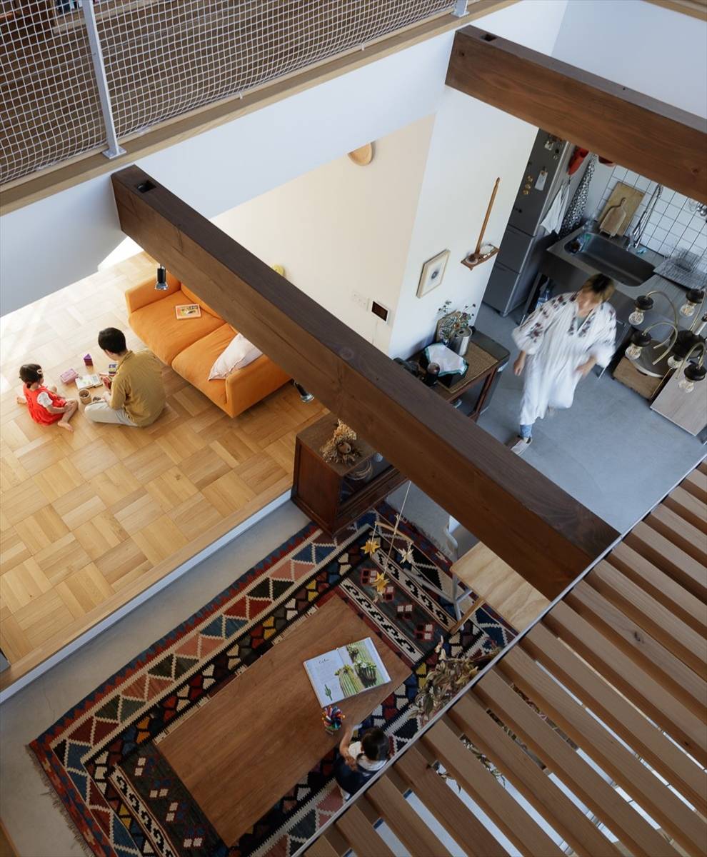 それぞれの空間が平面、断面的につながり、家族がつながる楽しい空間となりました。
