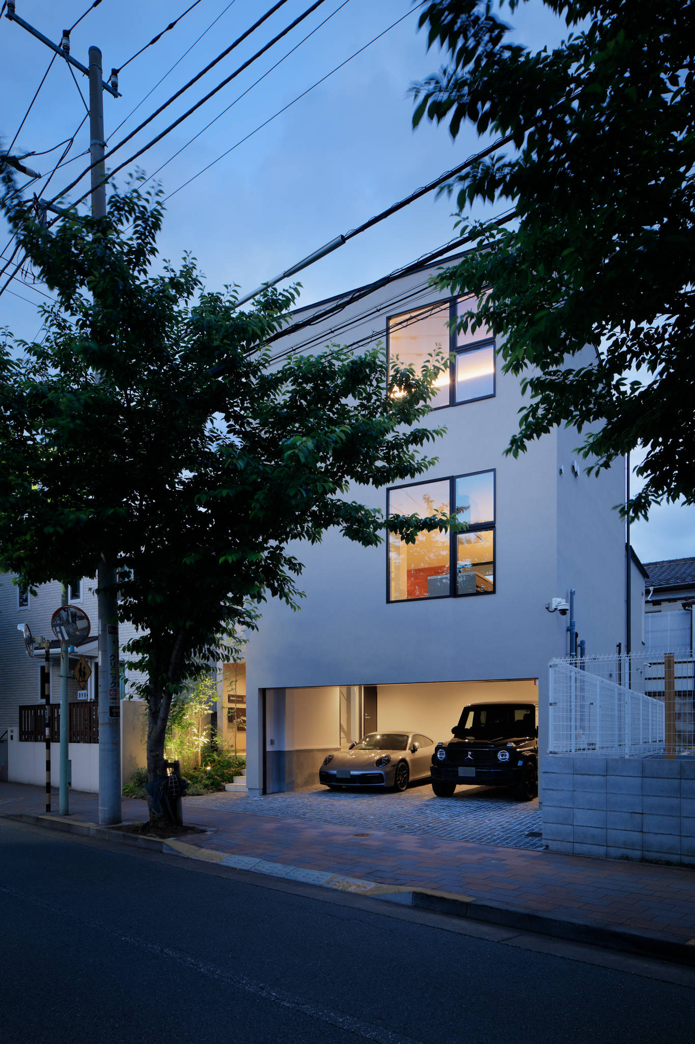 「前面道路の桜並木を望む家」というリクエストをいただきました。眺望のみならず、この北側道路は高度斜線の高さ制限の緩和にも一役買い、第一種低層住居専用地域でも何とか3階建てを可能にします。また、南側、東側は隣戸が迫り、西側も今はコインパーキングですが将来は建物が建つかもしれず、北側以外はプライバシーを確保する中で、如何にして明るく開放的な住まいを立体的に組み立てるか、というスキームでした。