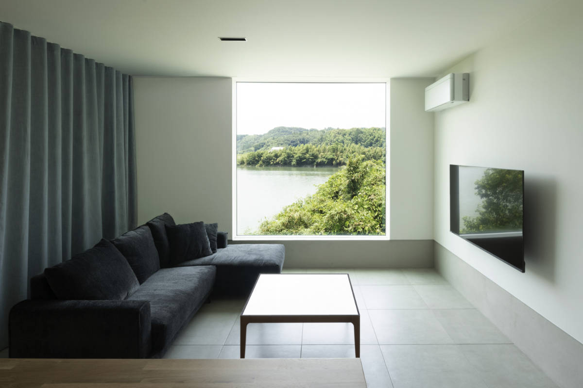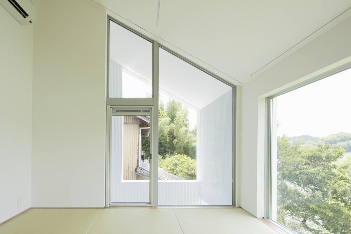 また、既存の住宅において、強風や埃を避けるために締切りとなっていた道路側の開口部は、新居では設けない計画とした。代わりにそちら側へは内部動線を集約することで、全ての居室を河川側に配置、同様に記憶として残る「窓から見える川辺の景色」を再現した。 一般的に、西側へ開口部を設けることは、住環境計画の上でも避けるべきだが、この住宅においては、河川側の豊かな環境を内部に取り込み、日々の暮らしの中で感じられることを優先している。