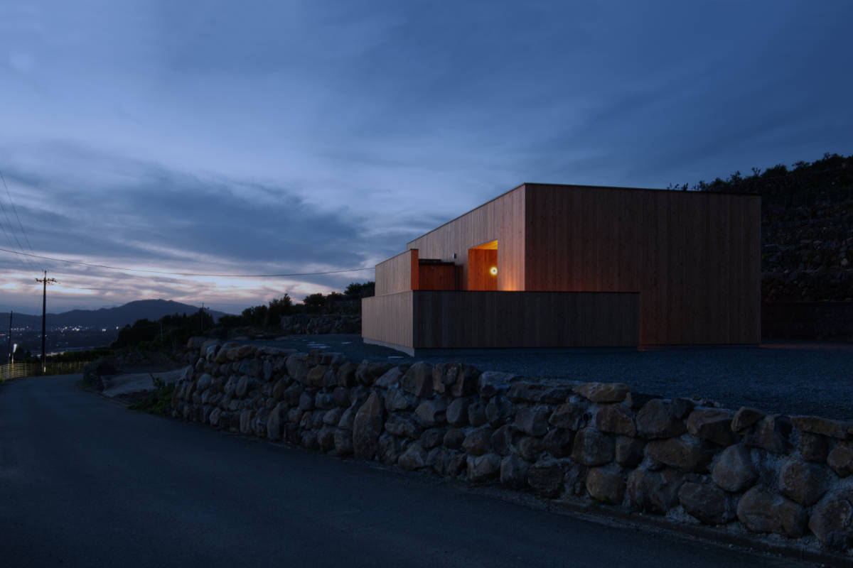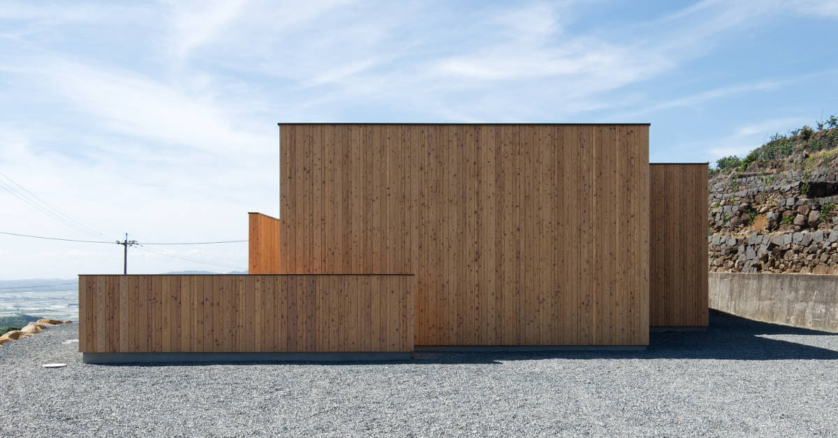 段々畑に建つ、一戸建て住宅の計画。敷地は、有明海と雲仙岳が一望できるみかん畑の中に位置しており、自然が豊かで何よりも景観に優れていた。これからも変わらずに続いていくと思われるこの環境の中で、只々住まうことに意識を向けるのは、少しばかり利己的な考え方ではないか。そんな思いから、今回の計画では、周辺環境との調和を軸に設計へと着手した。一方的に取り込むのではなく、寄り添うことによって、この住宅が美しい景観の一部となっていくことを目指している。