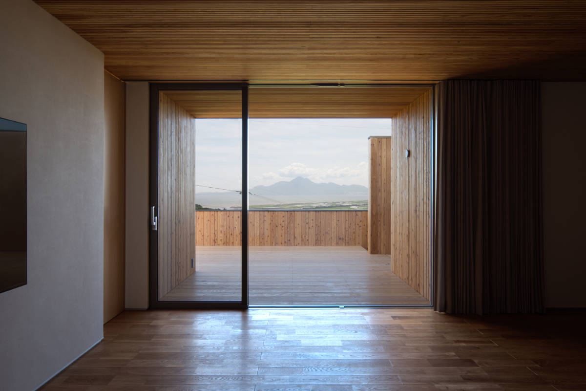この住宅は、周囲に広がる段々畑の形状を踏襲、大きさの異なる複数のヴォリュームを組み合わせることで成り立っている。道路や隣地との関係性に配慮しながらその配置を決めることで、プライバシーを保ちつつ、各居室からの眺望を確保した。そんなヴォリュームの一つには、広々とした面積を持つデッキテラスが含まれている。ある時はアウトドアリビングとして、ある時は展望台として、周辺環境と家族の日常を繋ぐ役割を担っている。