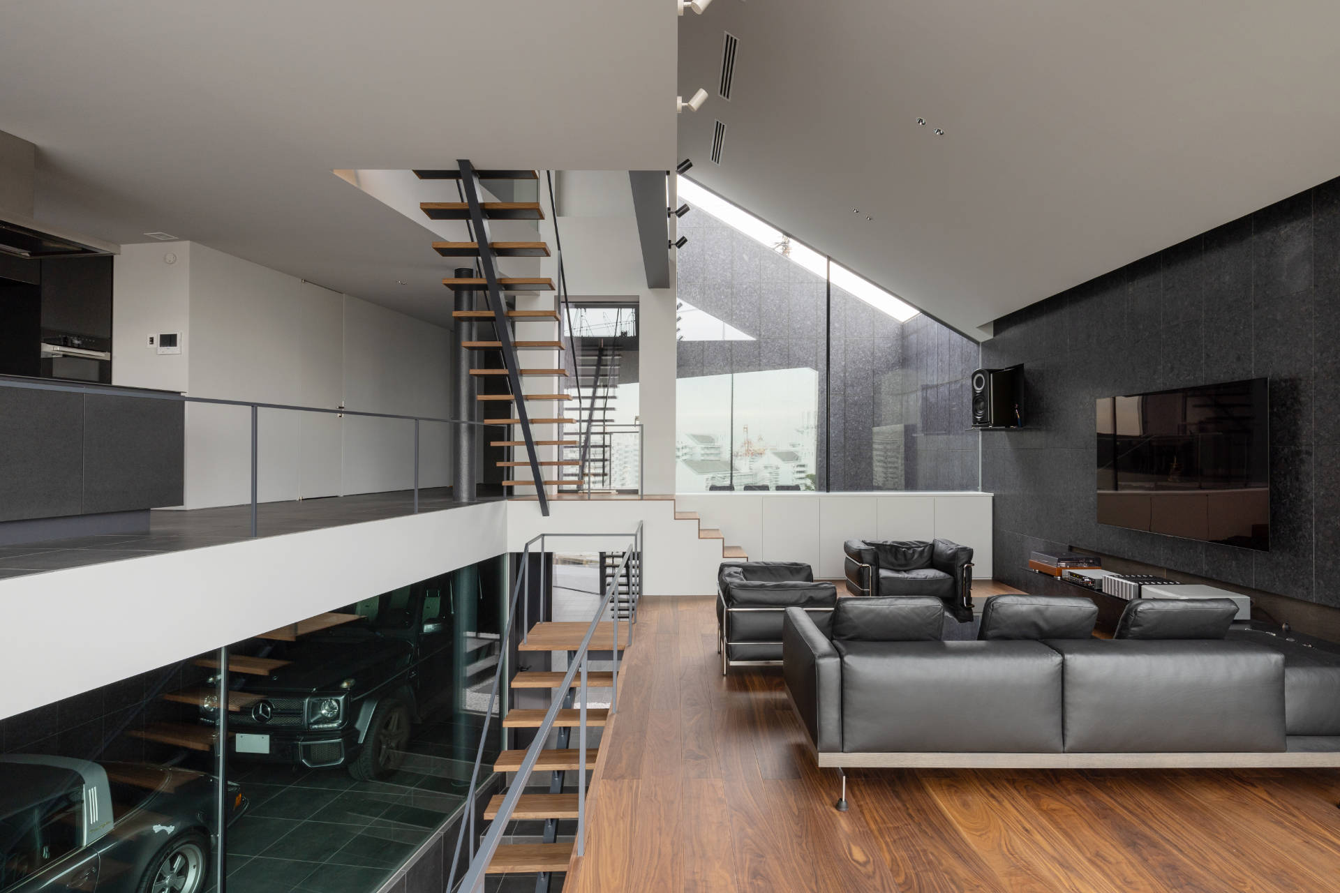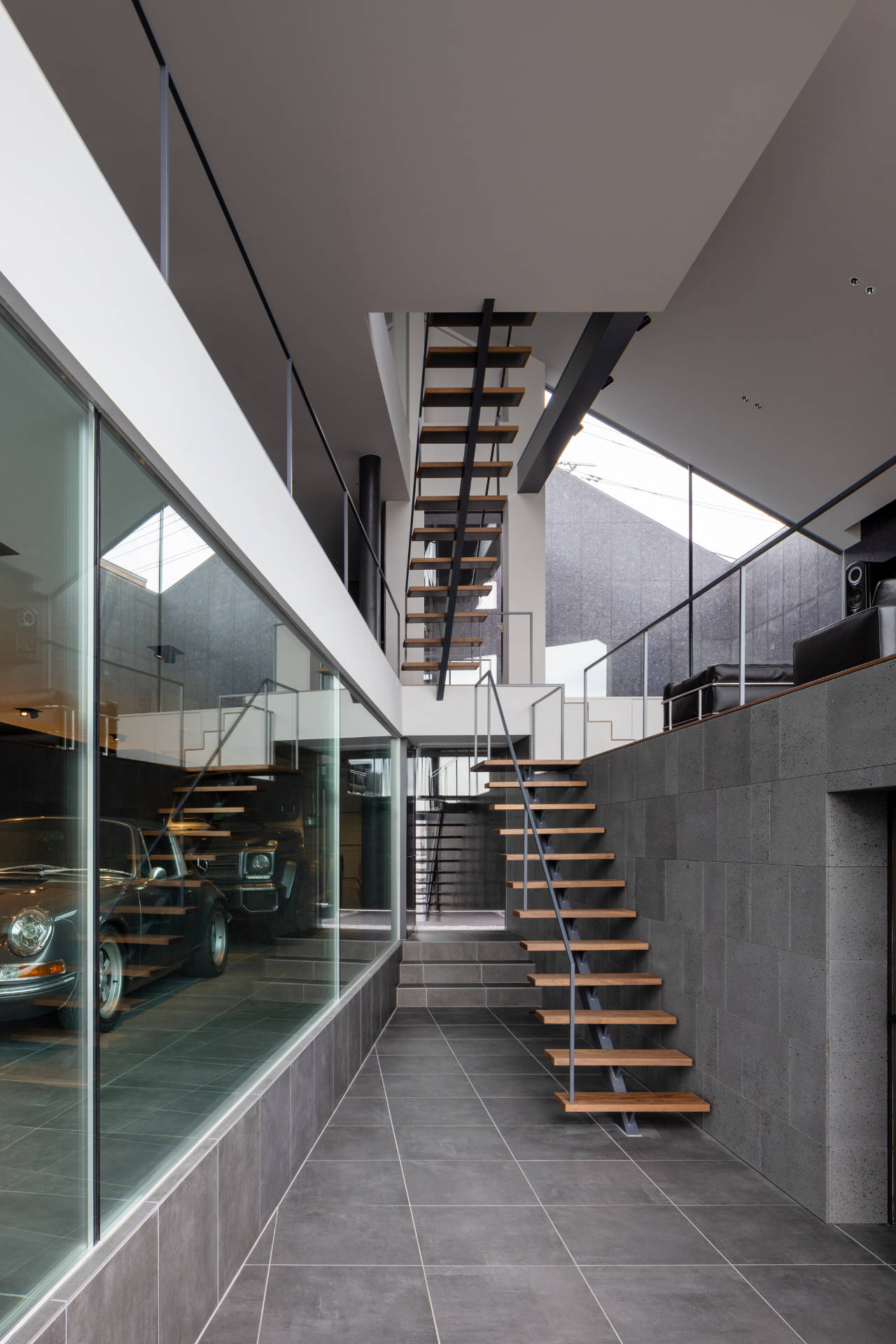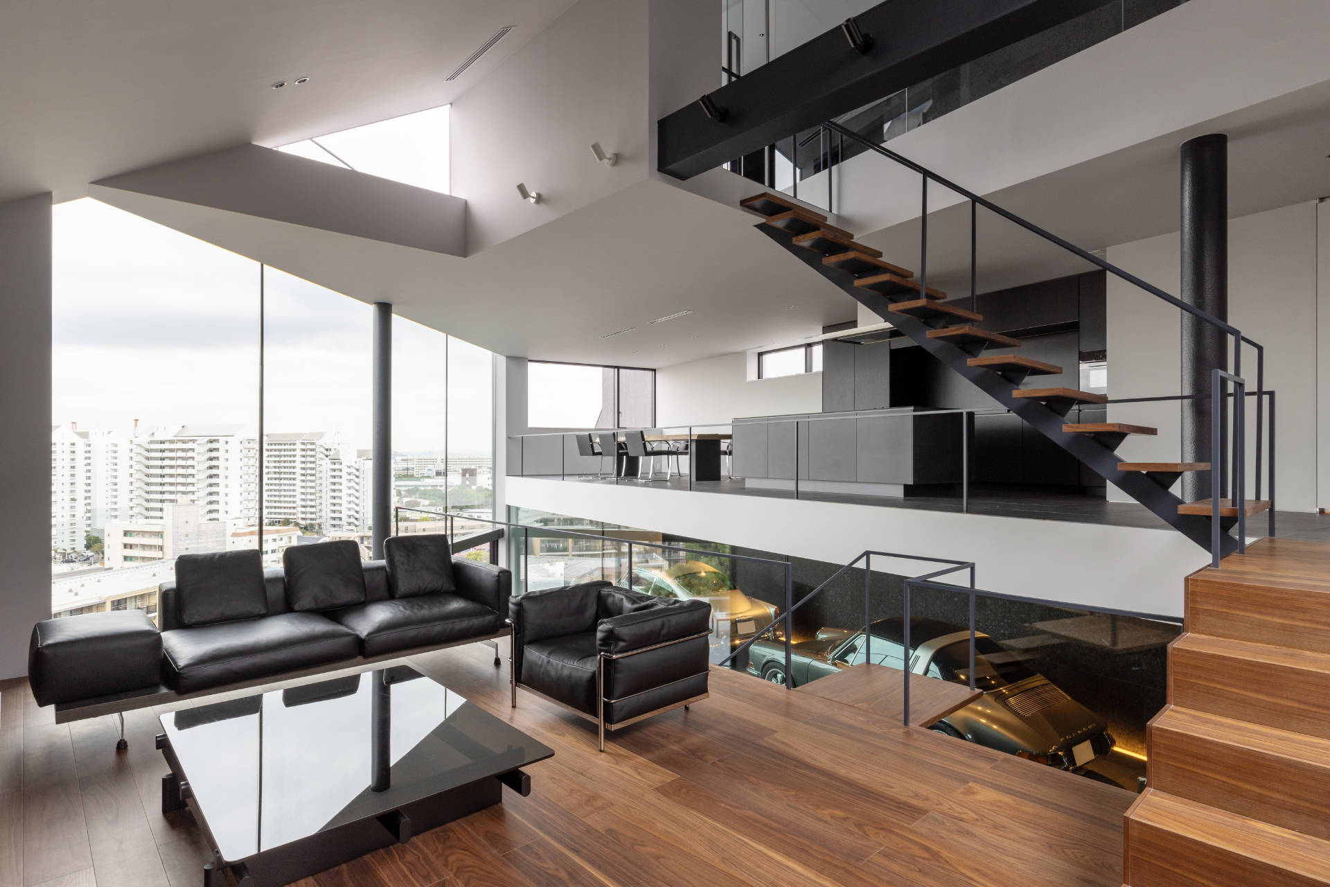 敷地は横浜市中心部の丘の頂部の際に位置しています。ビンテージカーを所有されているクライアントから車と共に暮らせるような家を持ちたいという要望を受けて、素晴らしい眺望と愛車が生活の中で印象的に感じられるような住宅を計画しました。