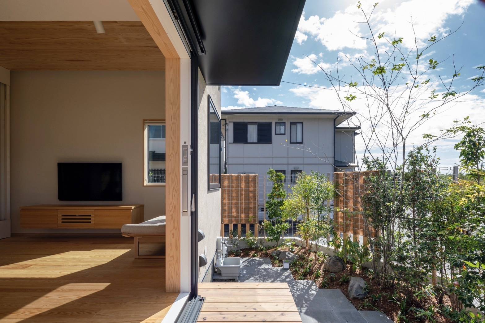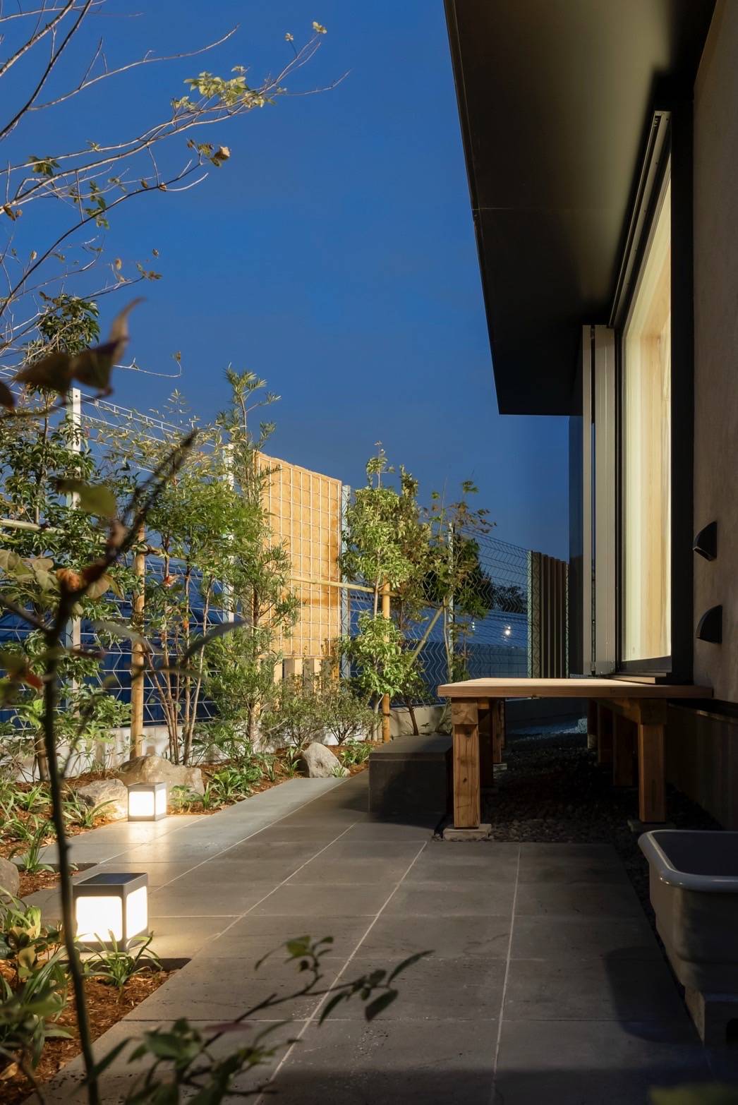 照明計画ではサーカディアンリズムによりリラックスし体調を整えることができる照明計画を実践し、外構植栽計画では元々この地域が里山であったイメージをモチーフにした世界観を表現しながら、町との接点にやわらかい境界をデザインすることで景観とプライバシーにも配慮しました。 地域との共生・循環・健康をテーマにした一つの実験的なモデル住宅が人々に認知され空間の心地よさや快適性を実体験してもらうこと、そして一つの住宅モデルが波及し人が心身ともに健康に暮らす社会の形成につながることを願っています。