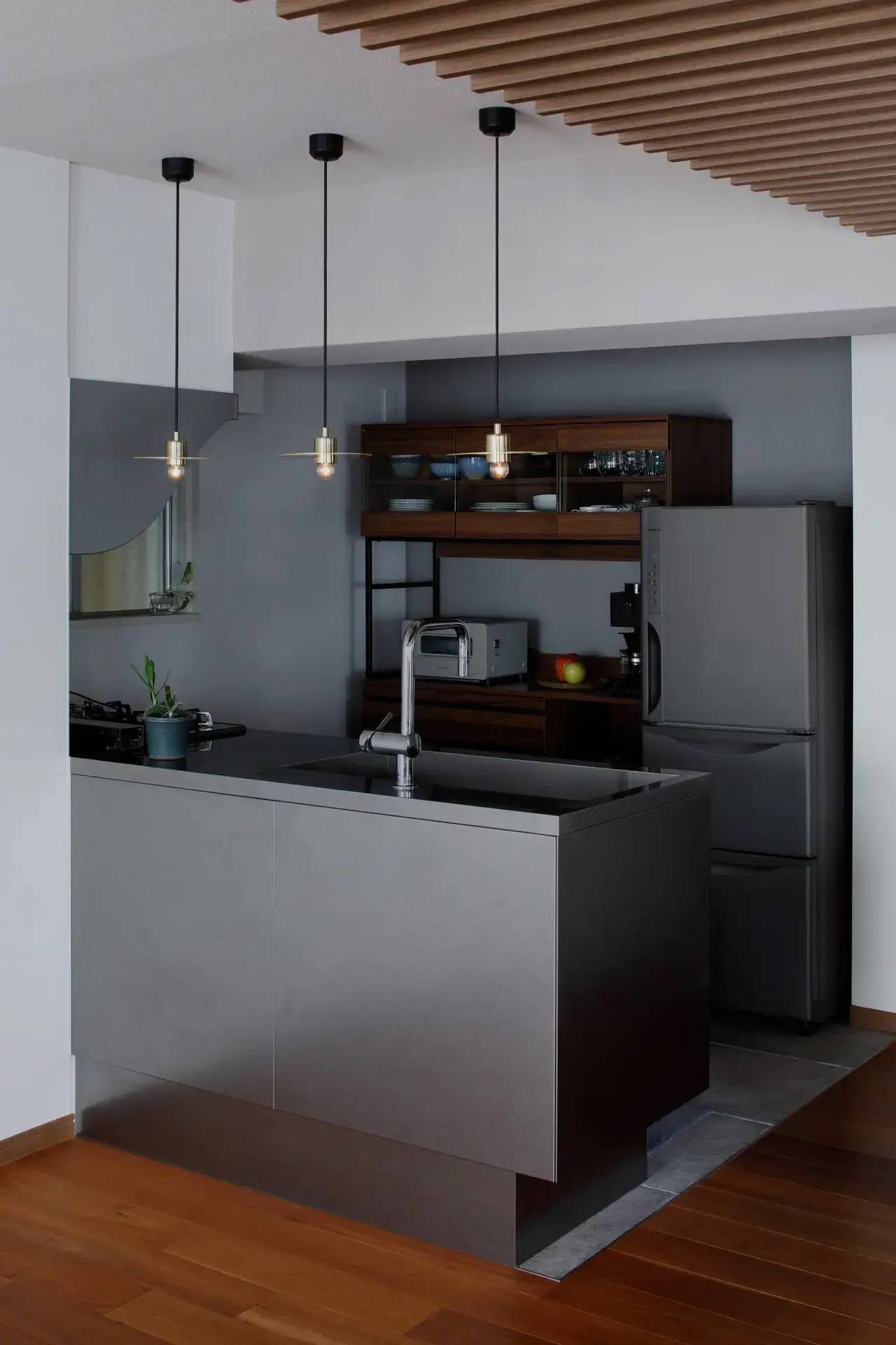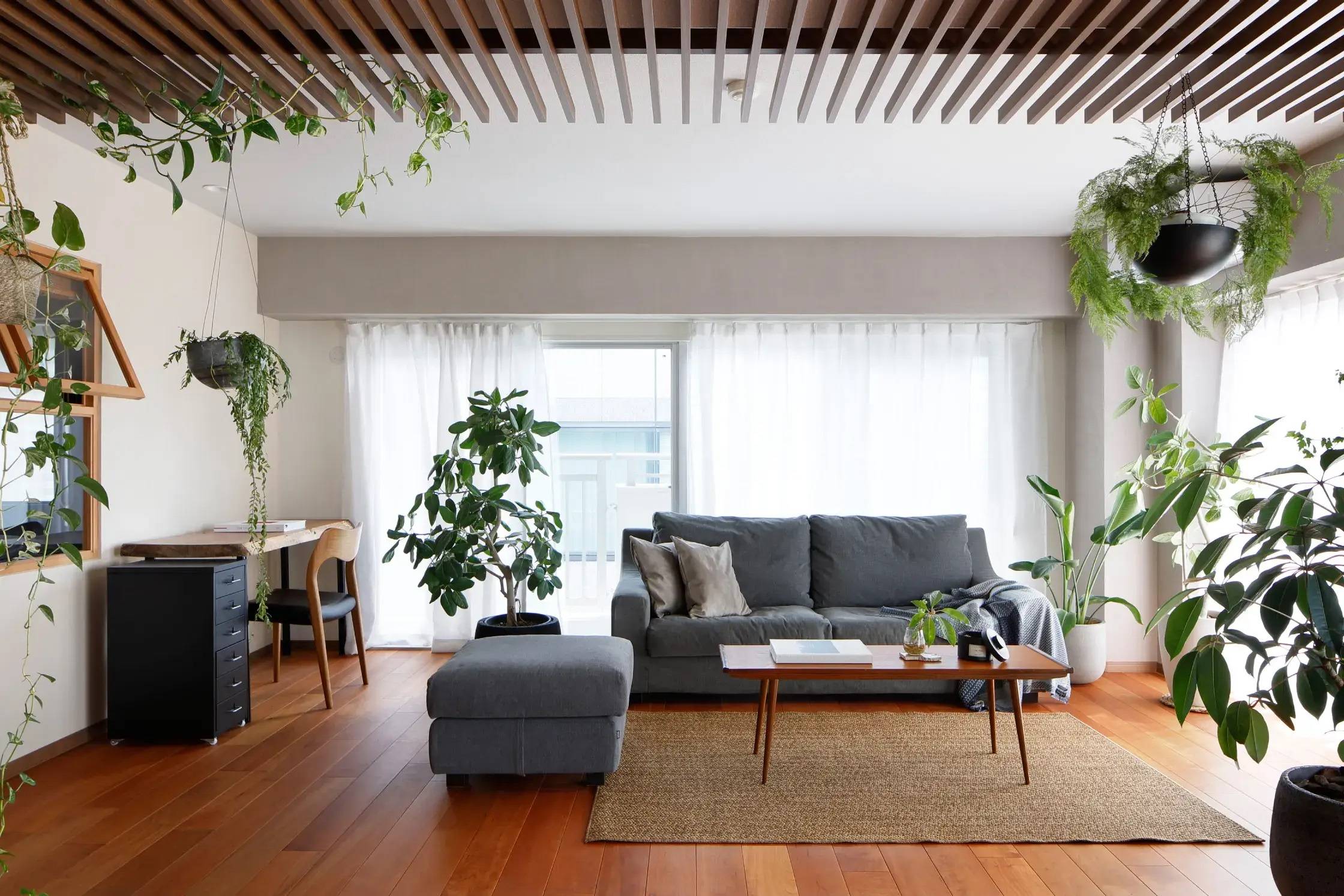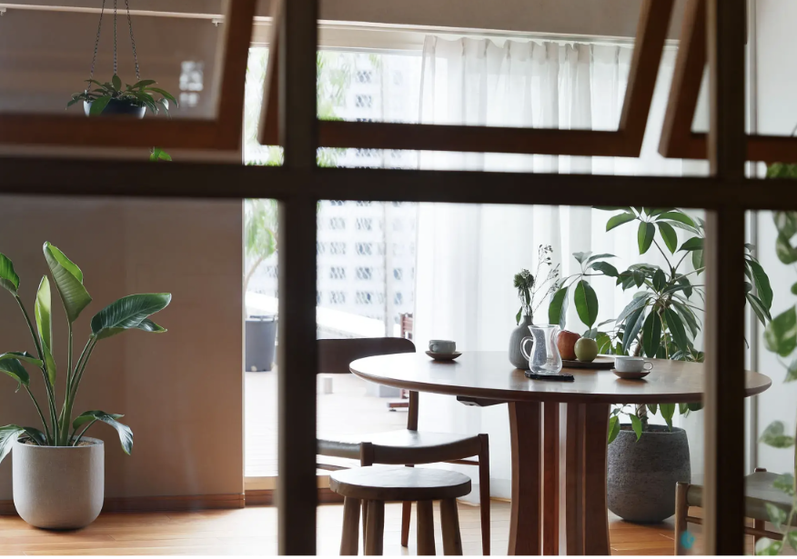 この住宅は東京山手線目黒駅の近くにあるマンションの改修計画である。都心に住みながらも、施主は太陽の陽射しと緑とゆるやかな風に囲まれ、友人が気軽に集まれる暮らしを求めていた。