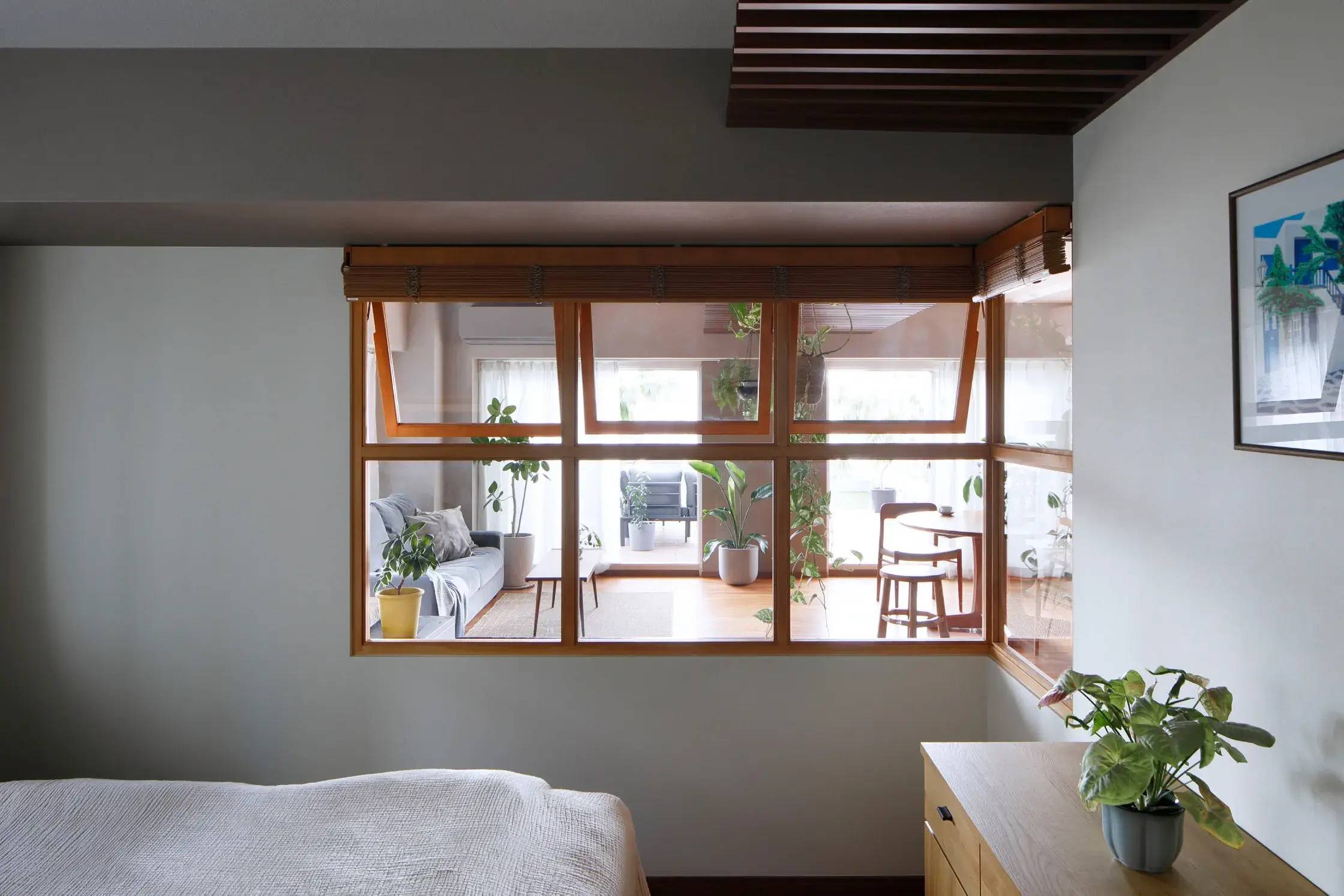 家に伺う度に交友関係の広い施主のご友人がよく集っていて、このリビングが都市の中の「中庭」のように、従来のリビングとは異なった公共性を帯びていた。コンクリートがひしめき合う都心でも、心地よい風や陽射し、そして自然を感じながら人が集う、人間の根元的な喜びを感じられる暮らしが実現できたと考えている。