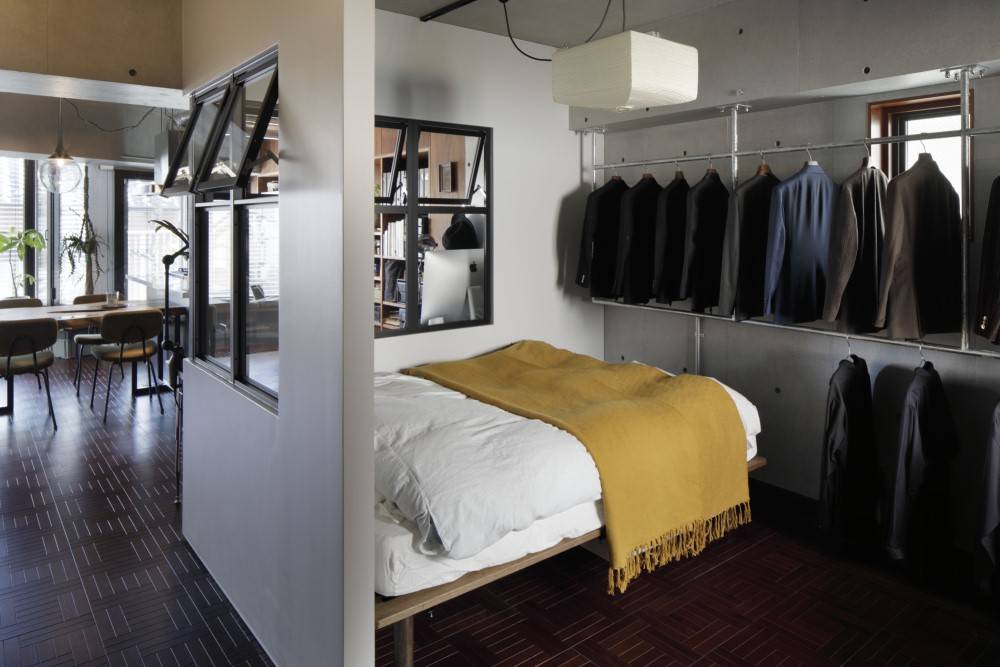 東京都目黒区の丘陵な地形に建つコーポラティブハウスで、東京でテーラーを営む夫妻のための住宅である。