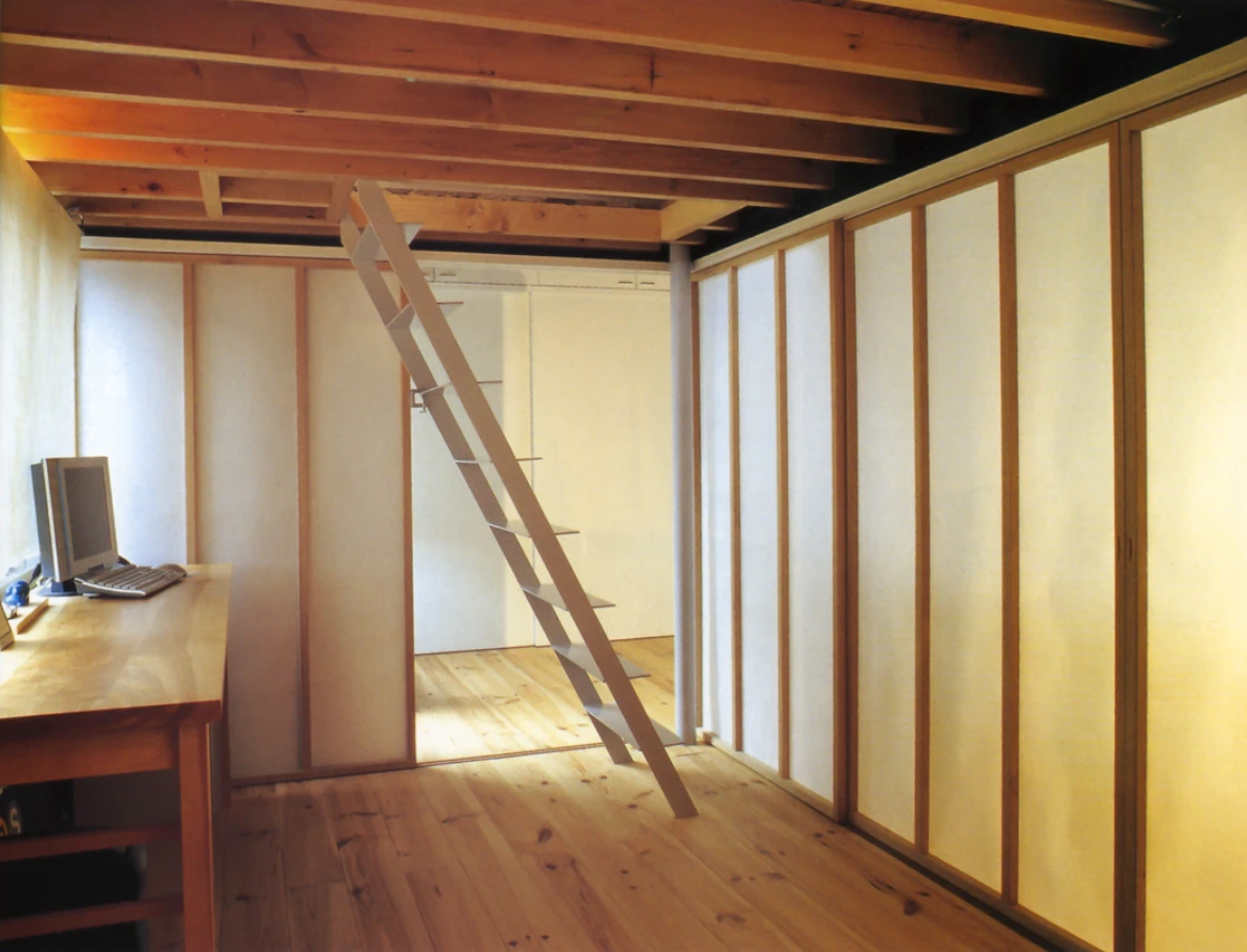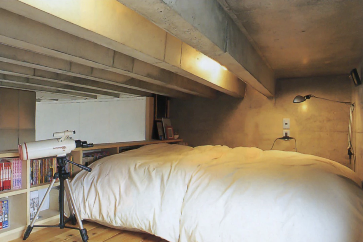 なにもない大きな空間は、将来外人向けに賃貸できるようにとの施主の要望であり、子供をつくるつもりはないという夫婦の明快な生活スタイルを反映したものになっている。