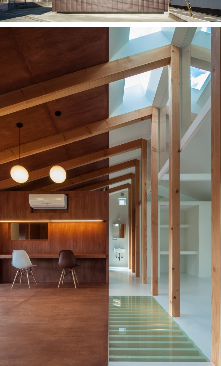 2、南北の明暗環境に対する光の吸収・反射を意図した対照的な仕上による2ゾーン。