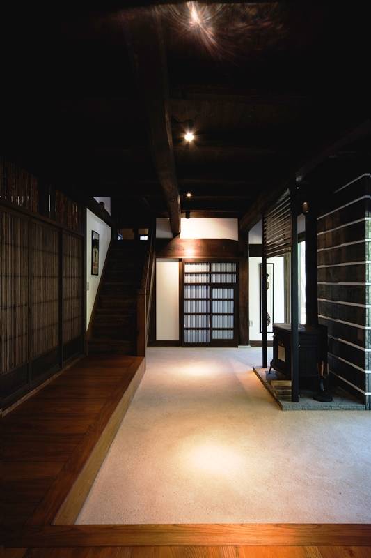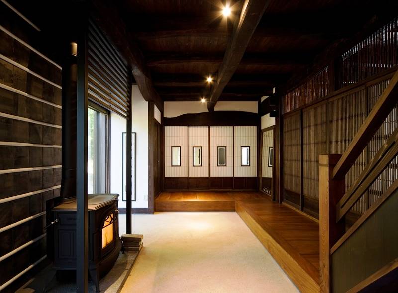 日本の骨董や伝統を何より好むご主人が新潟県の古民家を移築し住まいとして再生しました。古い建具に古い板材、そこにモダンな家具や絵画をかざり自分なりの気に入った空間を演出なさって暮らしておられます。