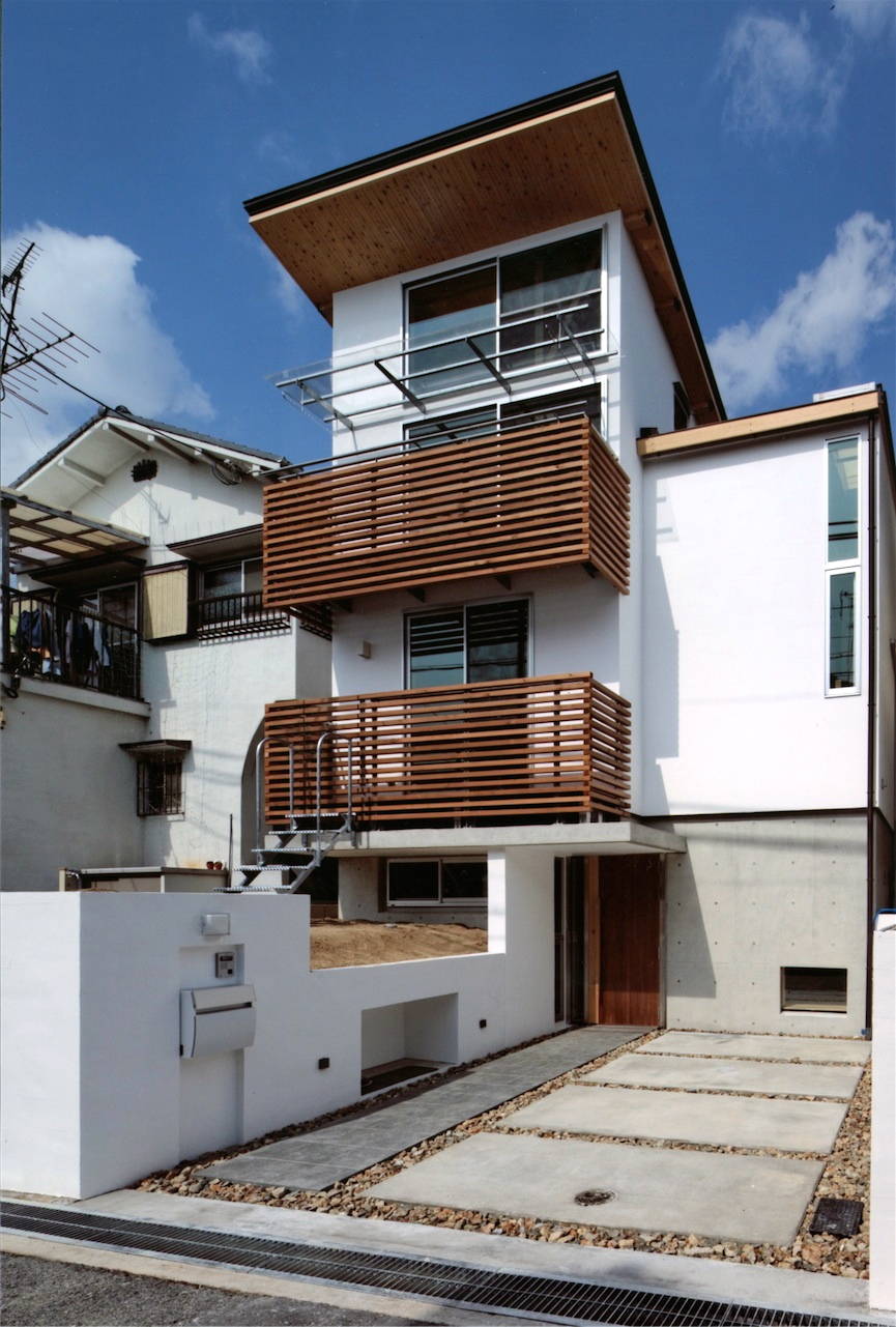 神戸の海を見下ろせる、山の手の清閑な住宅地に建つ地下RC造1階・地上木造2階の合計3階の住宅です。