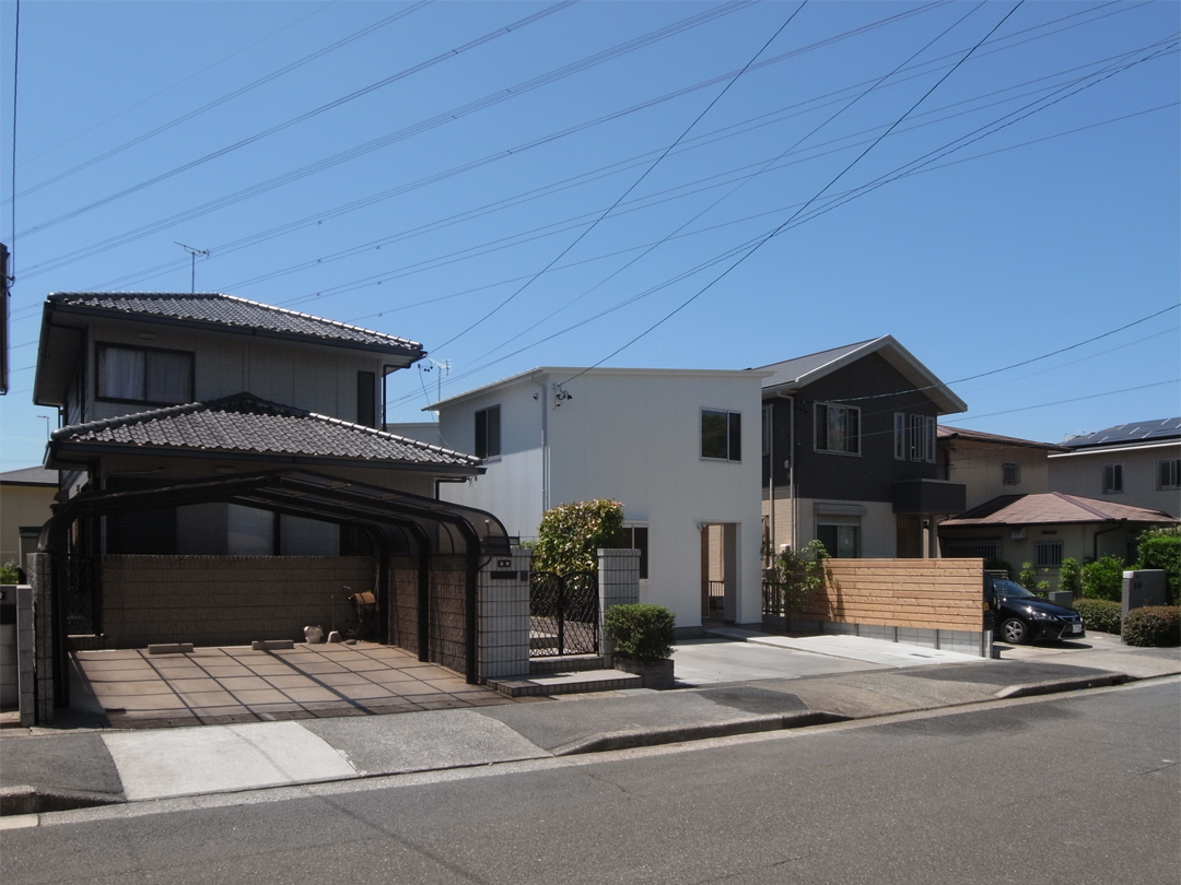 名古屋市守山区に建つ、小さな正方形平面の平屋建て住宅...
