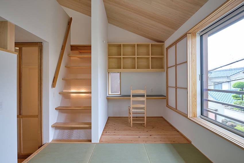 ロフトには家全体の空気を循環させるサーキュレーションを設け、1階に空気を送る仕組みを取っています。これにより、家全体の温度をなるだけ均一になるように試みています。26坪の小さな家ながら、4人家族に必要な要件と楽しみを持った家になったかと思います。