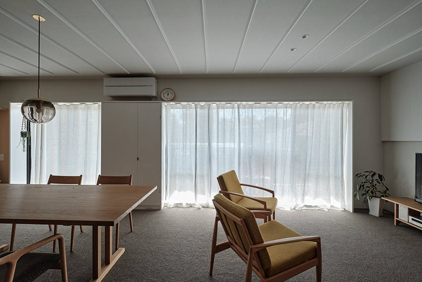 南にあった寝室をなくし、家族が集まるLDKの面積を増やすことにしました。寝室は必要な大きさを整理して改修前より減らしています。