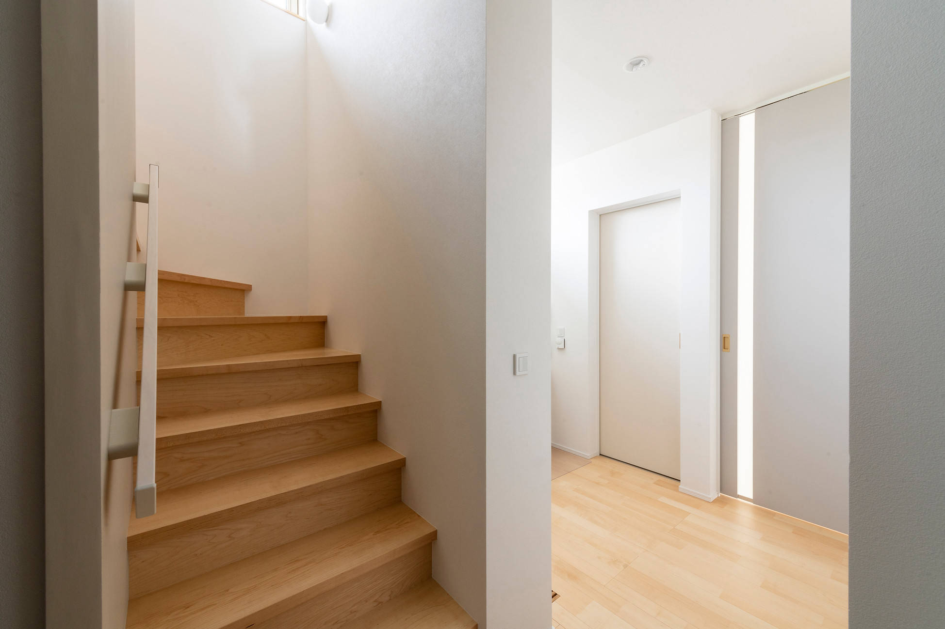 住宅地の中で間口が狭く奥行きの長いうなぎの寝床のような敷地に立地する住宅。