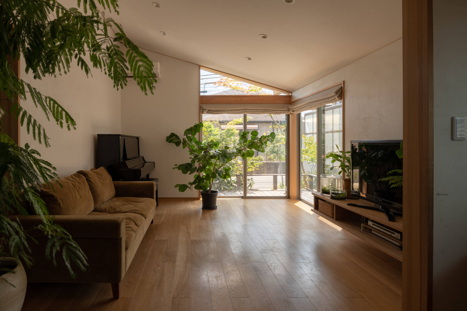 JR松井山手駅付近に広がる閑静な住宅地に位置する数寄屋大工と造園家夫婦の家。