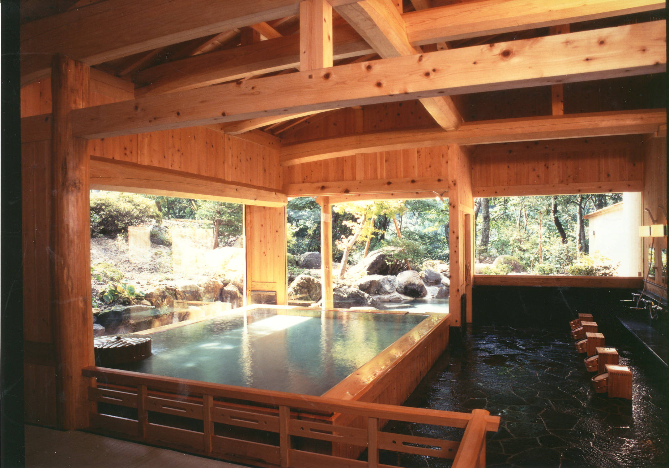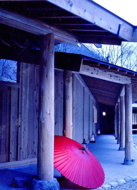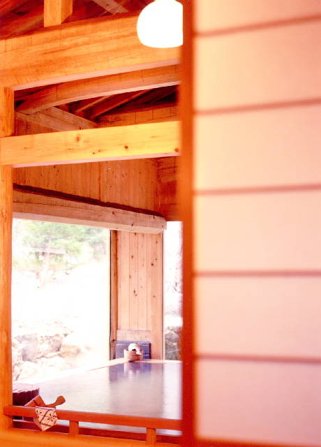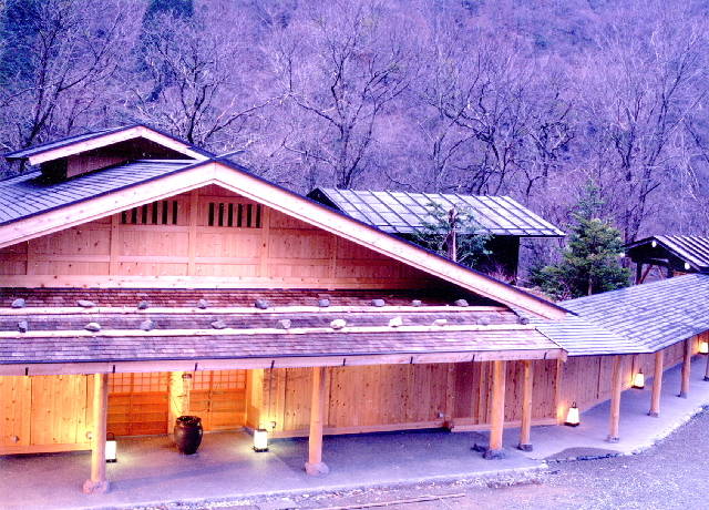 奥飛騨温泉郷新平湯温泉にある温泉旅館。新潟の古民家を移築し、メインの御母屋と宿泊棟と浴室棟を計画しました。 木曽五木を使った昔ながらの湯屋方式の浴室がお客様に喜ばれています。また古民家を移築したロビーはそこを突き抜けて見える中庭が別世界へ誘います。 松本市降幡建築設計事務所時代の最後の頃に担当させていただいた物件です。