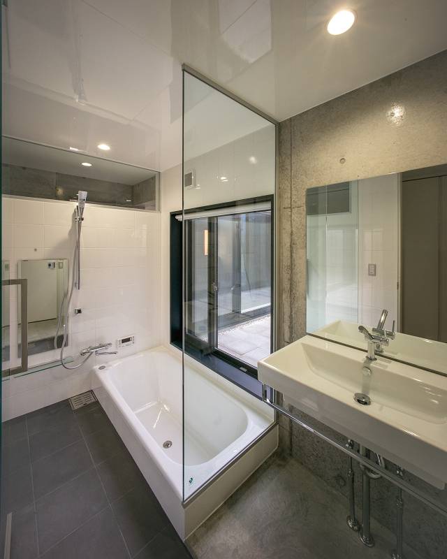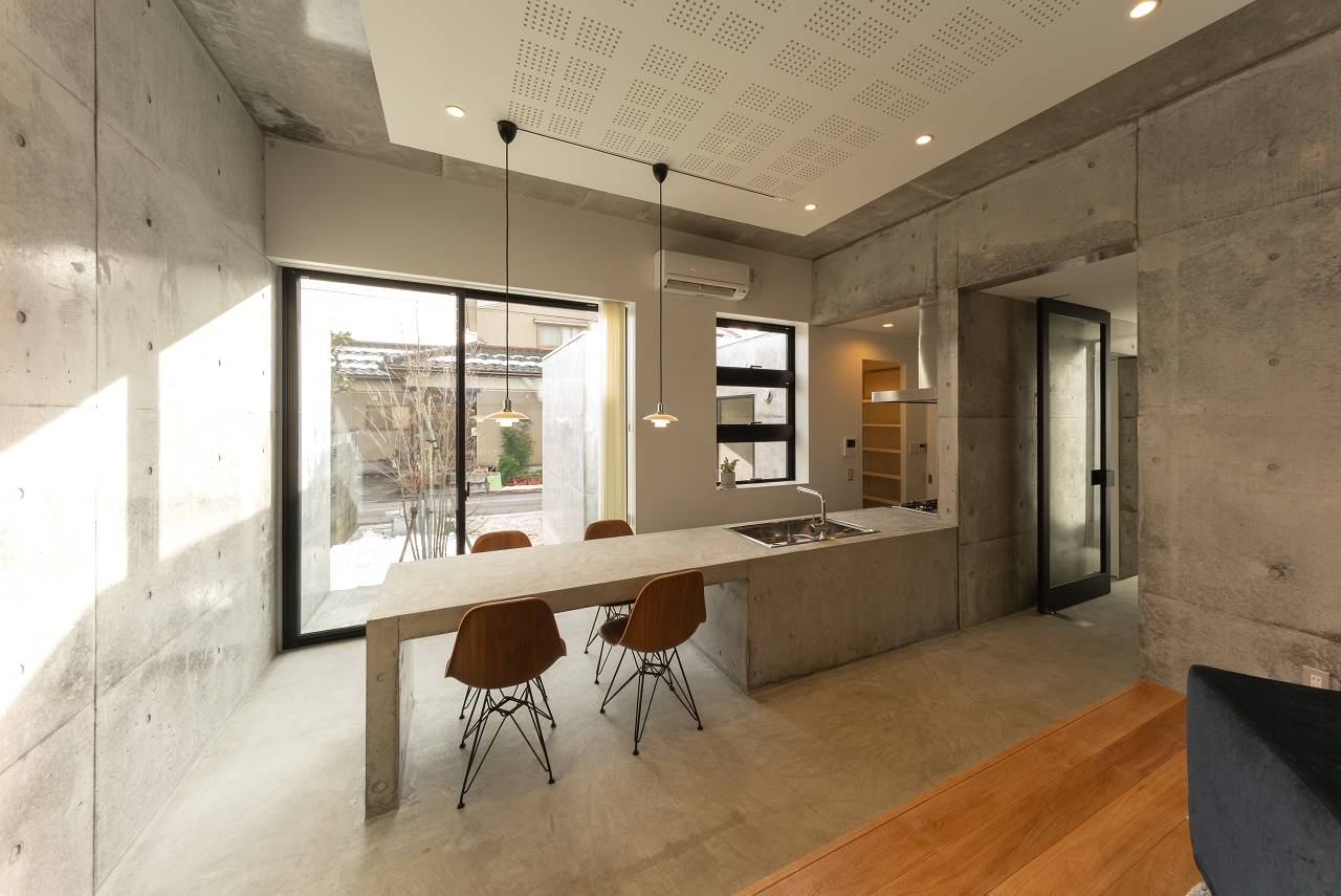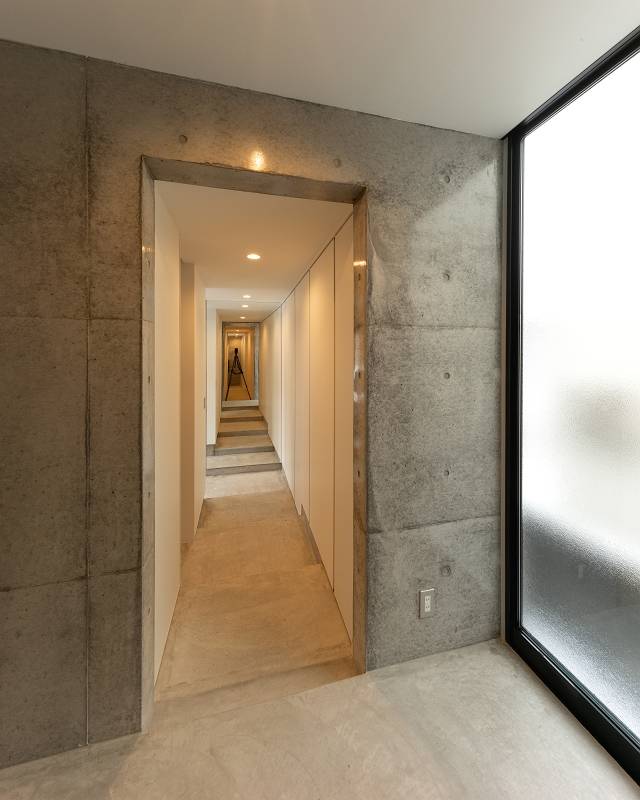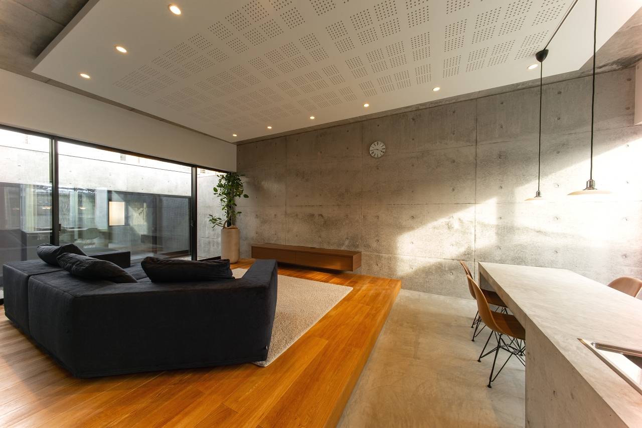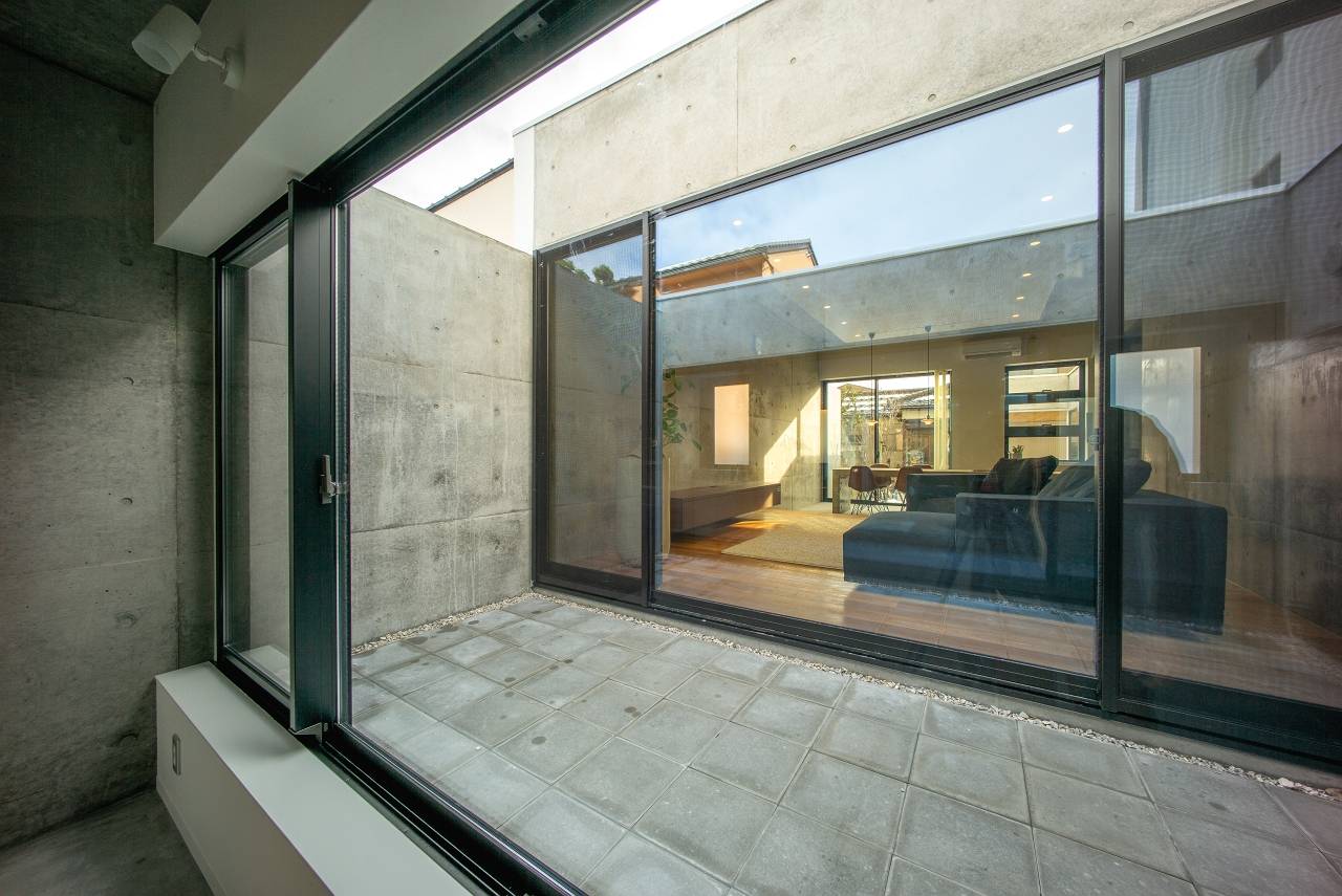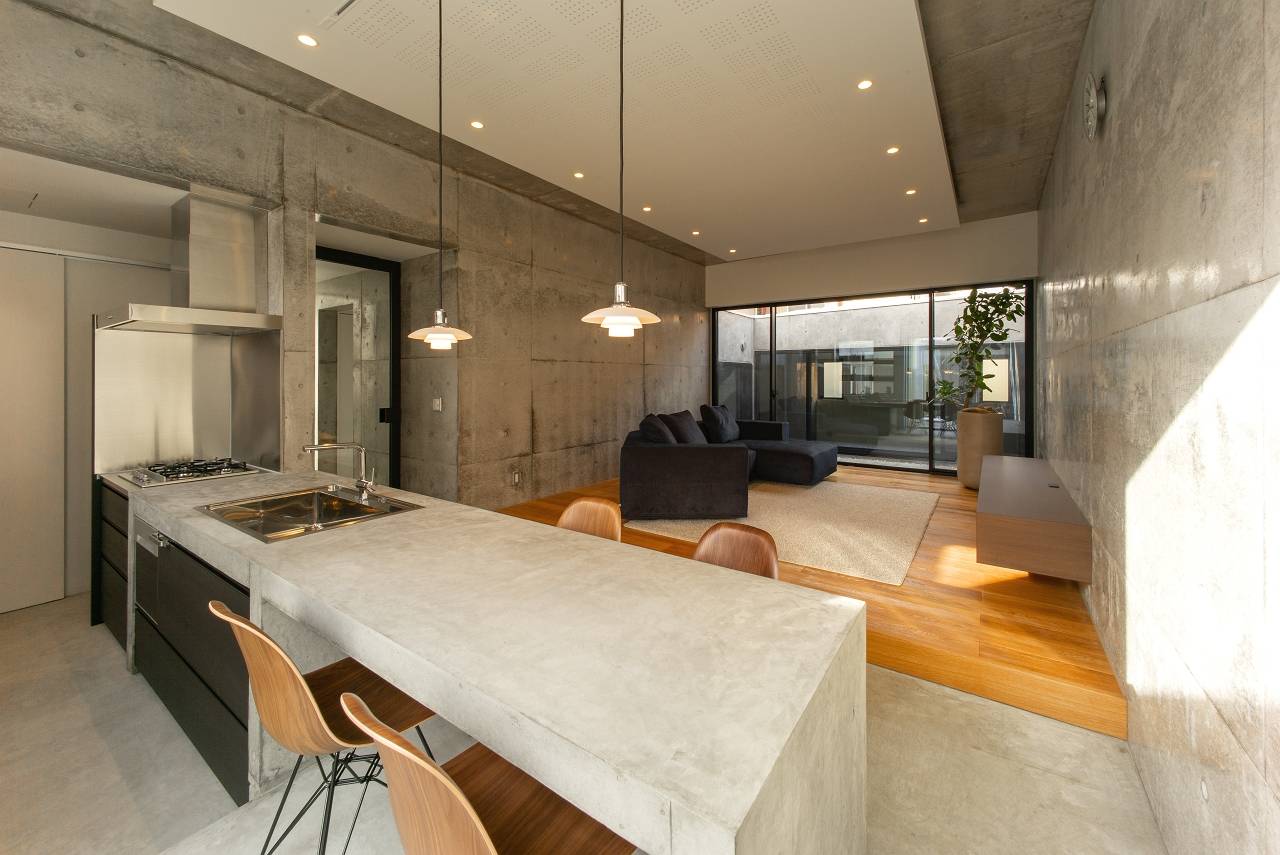 中庭とギャラリーのあるコンクリート・フラットハウス