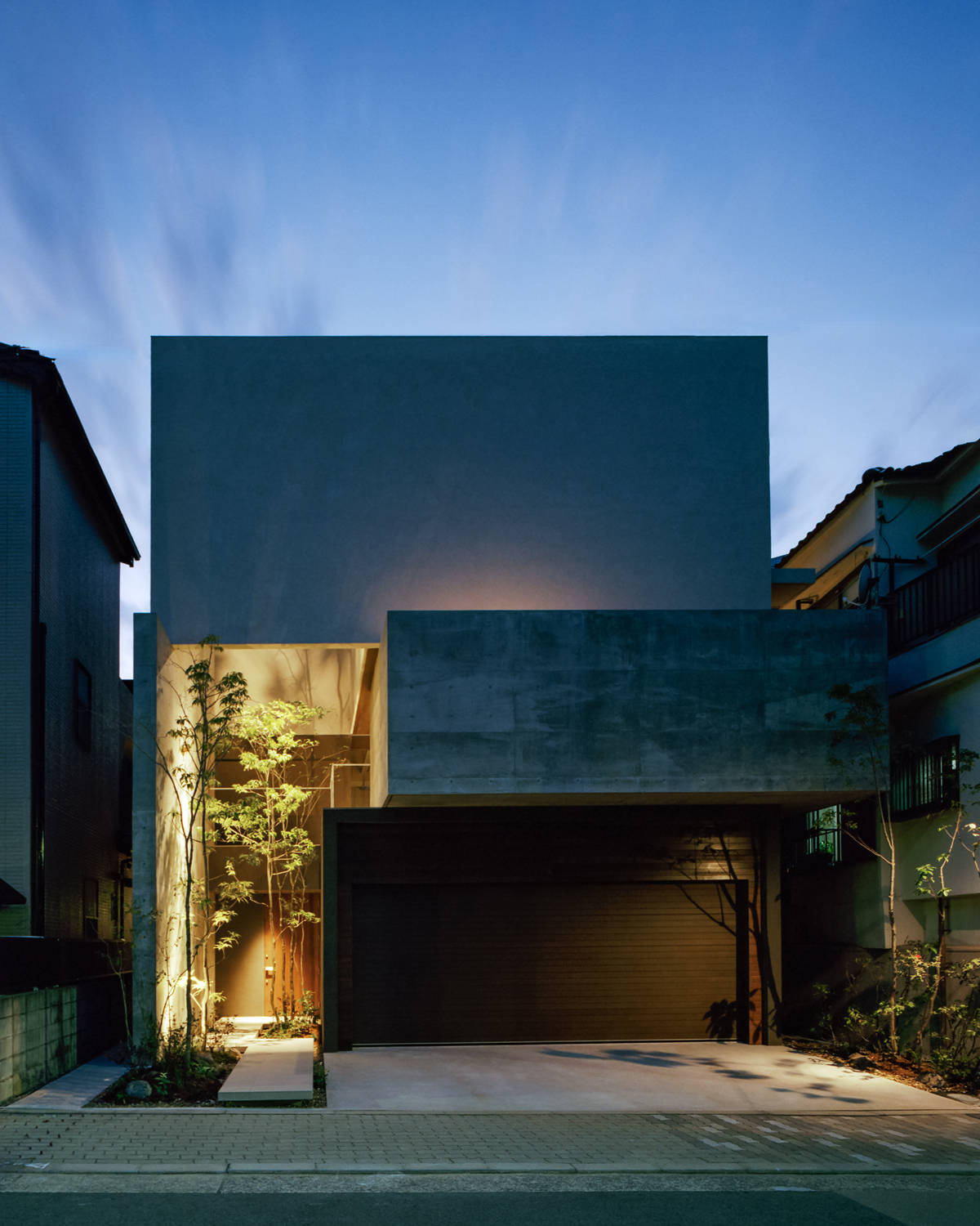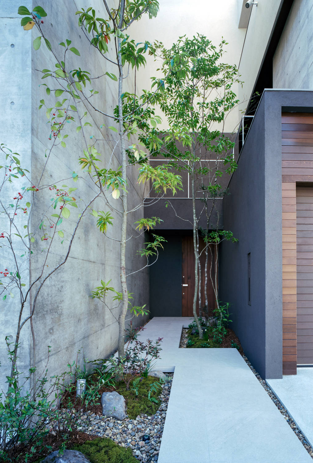 2世帯住宅で、プライバシーを守りながらも、街とつながる植栽があることが希望でした。