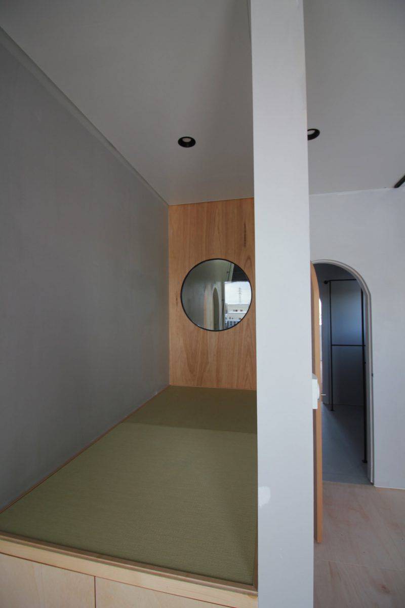 そこで、東西は開口部を減らす一方、南北には大きく開いたトンネル状のプランとすることで、コンパクトさを感じさせない解放感のある空間を実現しました。