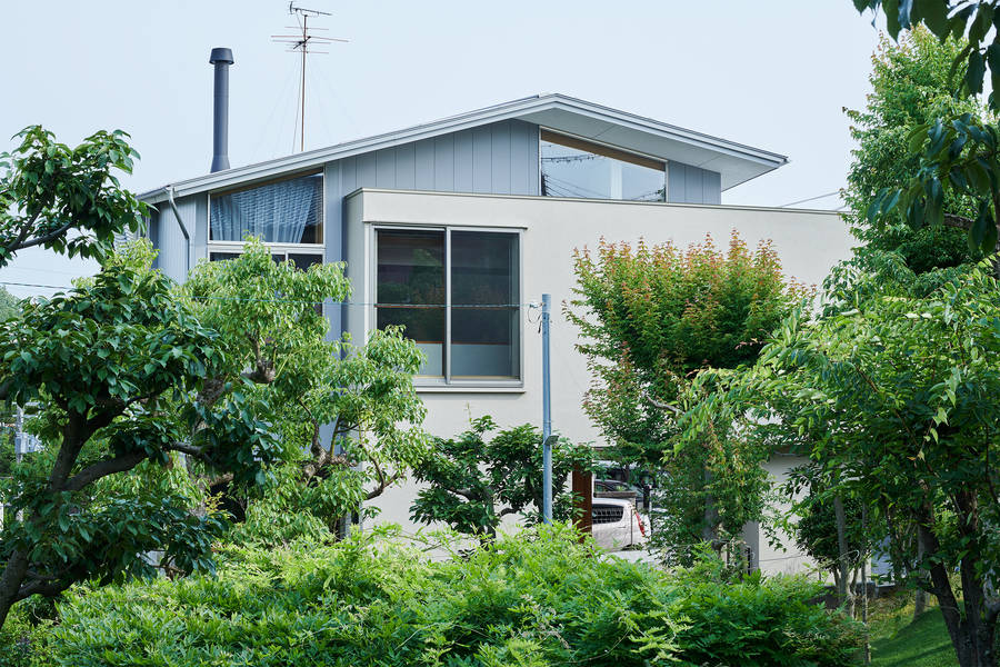 高台の住宅地に建つ木造住宅。