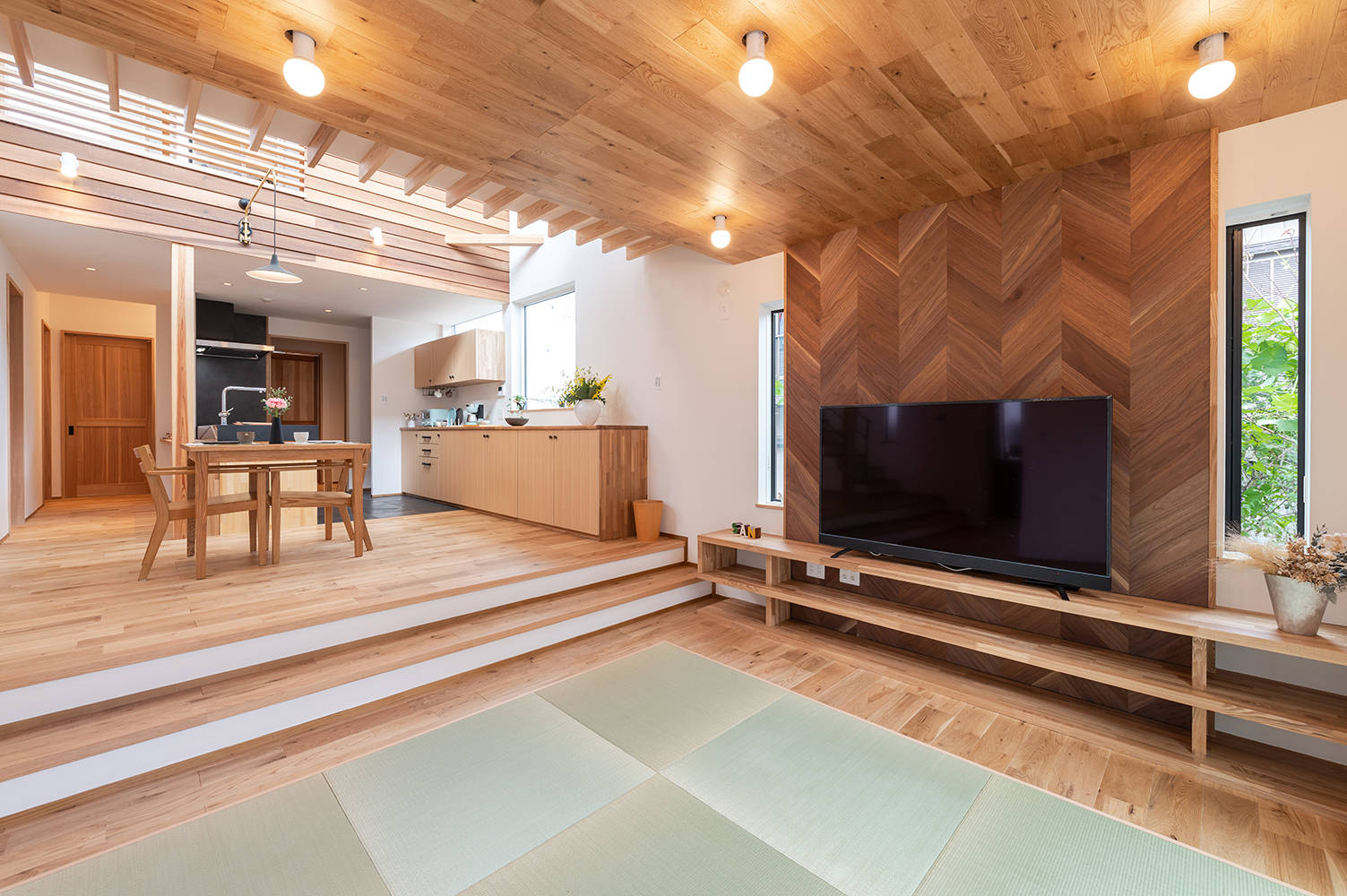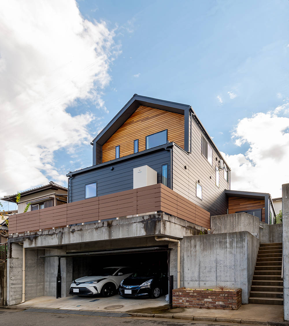既存車庫との地盤面の差を解消するためにスキップフロアーを採用しました。