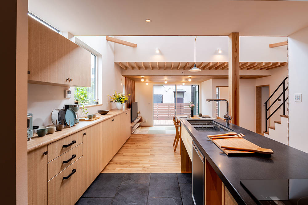 クールな外観ですが、内部はすべて自然素材でできた温かみのある使いやすいお住まいになっています。