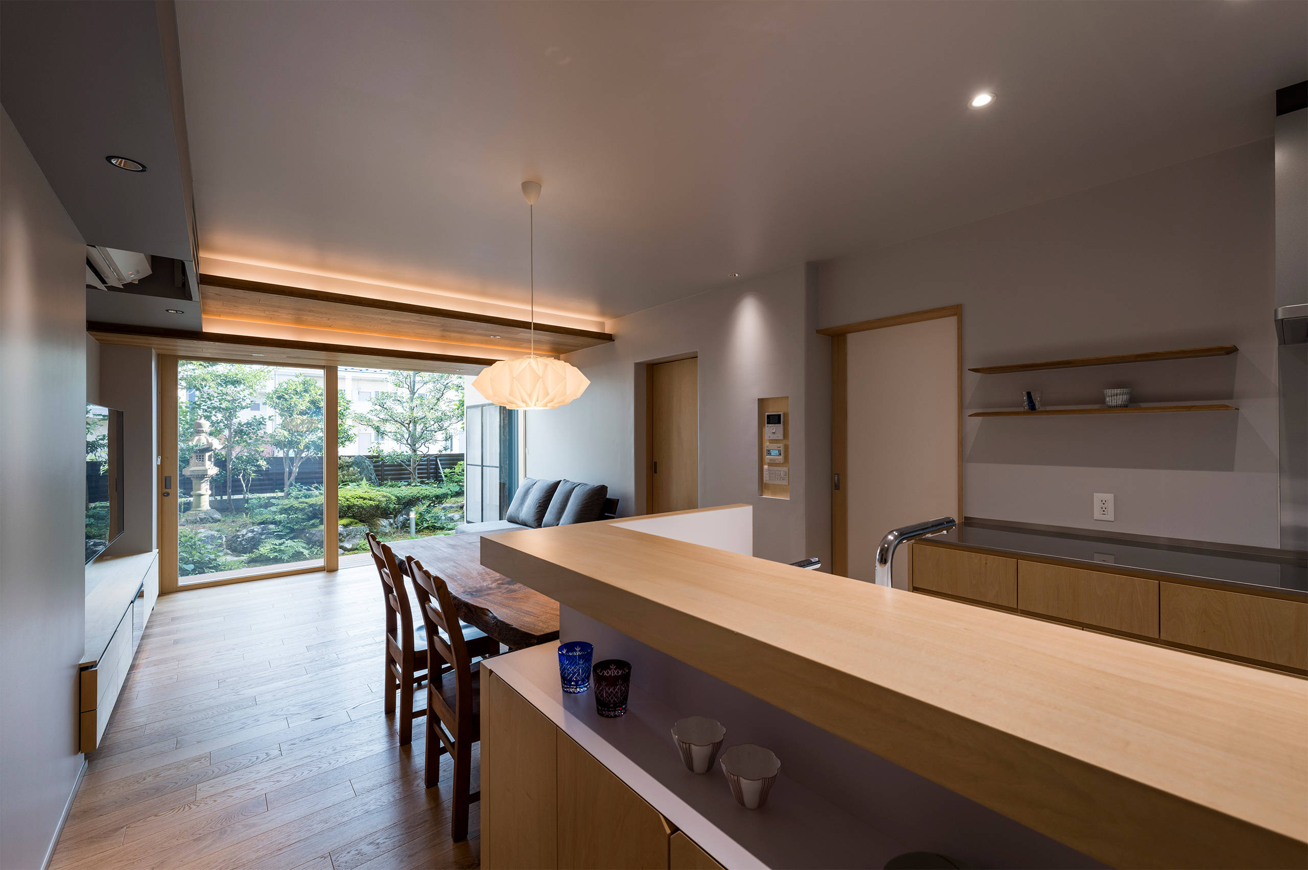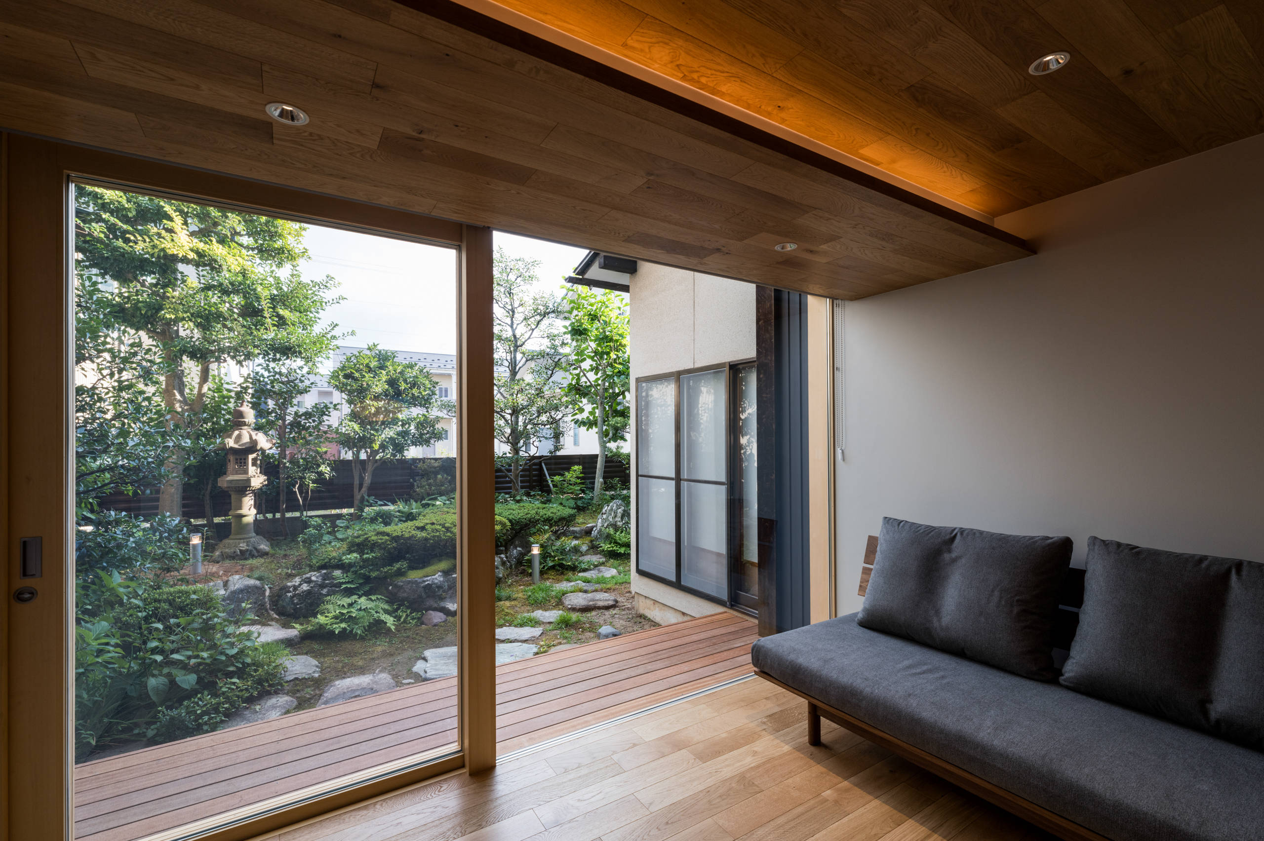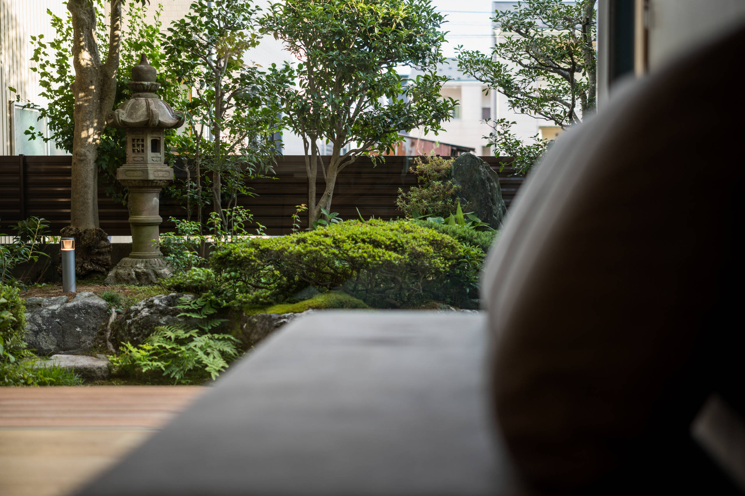 灯籠や飛び石、樹木や苔、広い濡れ縁のある景色はかつて施主の父が丁寧に手入れをし、それを愉しんでいたであろう感慨深い景色であることを節々に感じた。