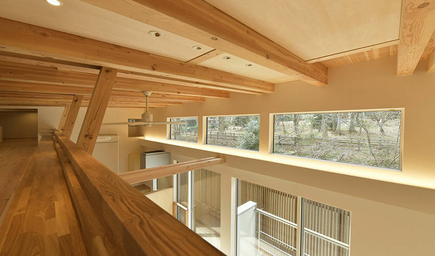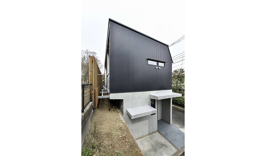 費用の都合で擁壁は解体せず、南側緑道とパラレルに向き合い、 プライバシーだけではなく通風・採光・音などを、よりニュートラルに受けとめる装置として、 新たな境界壁を構築しました。せめぎ合う暮らしや風土を適度に開放し、 緩やかに社会とつながることを意図しています。