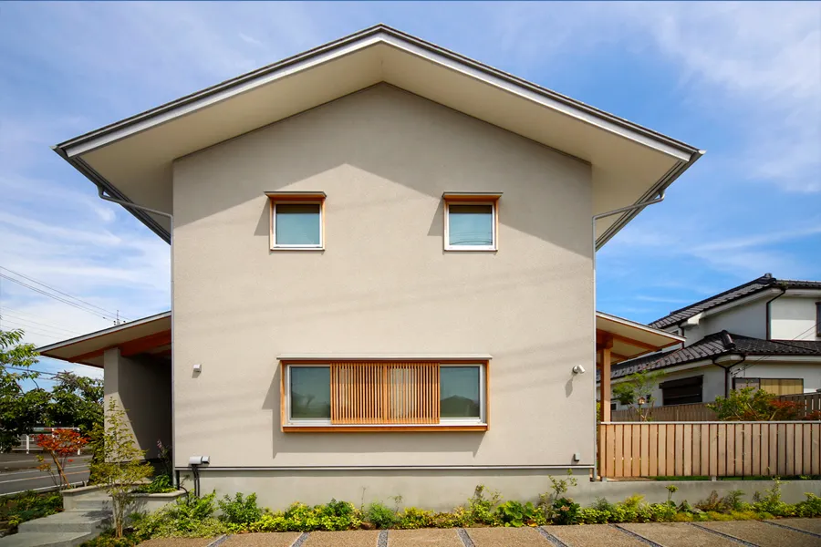 片流れの一枚の屋根がかかる平屋のような住宅 受 ...