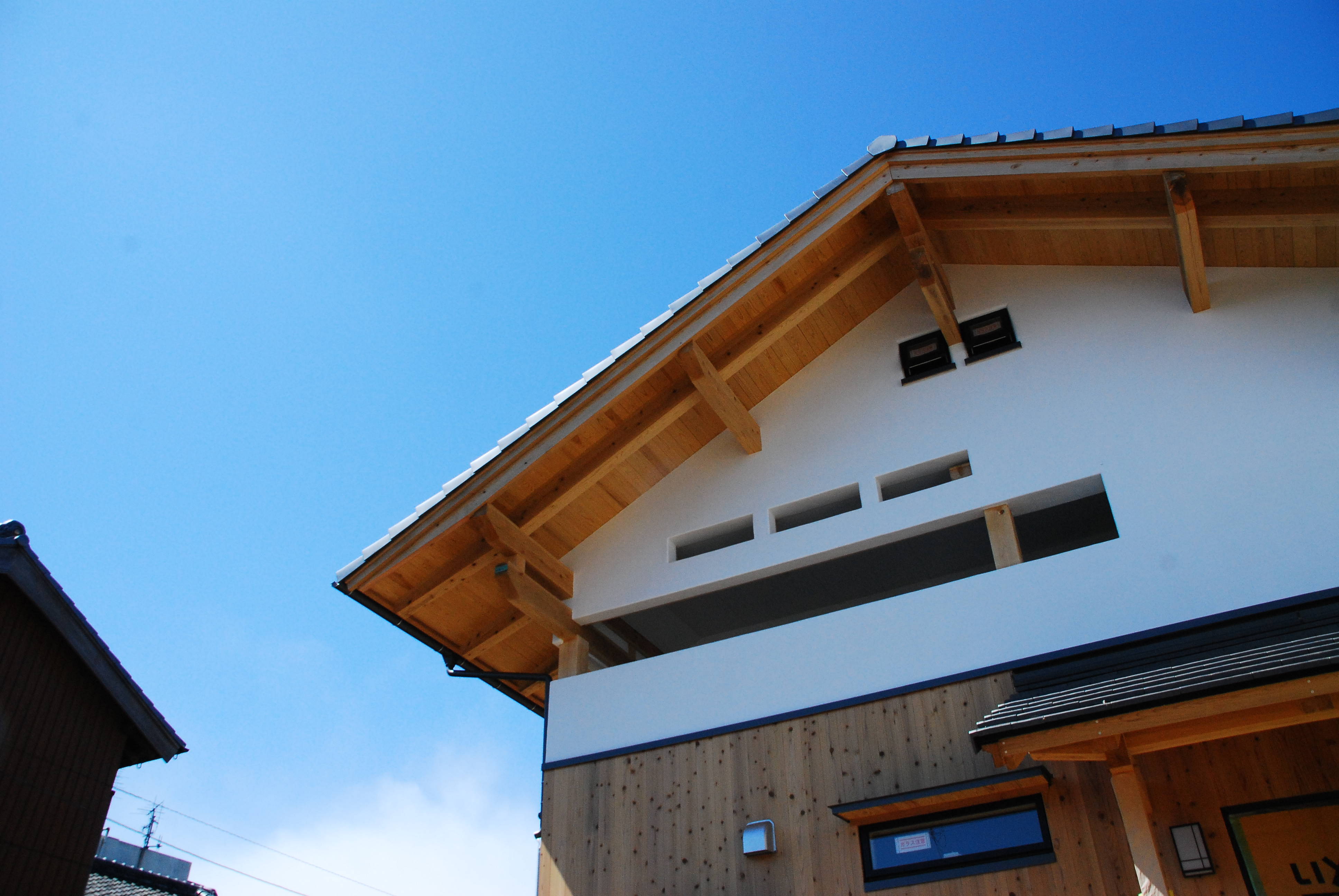 高田本山専修寺に程近い、特徴ある切妻の家。 土壁温水輻射暖房採用