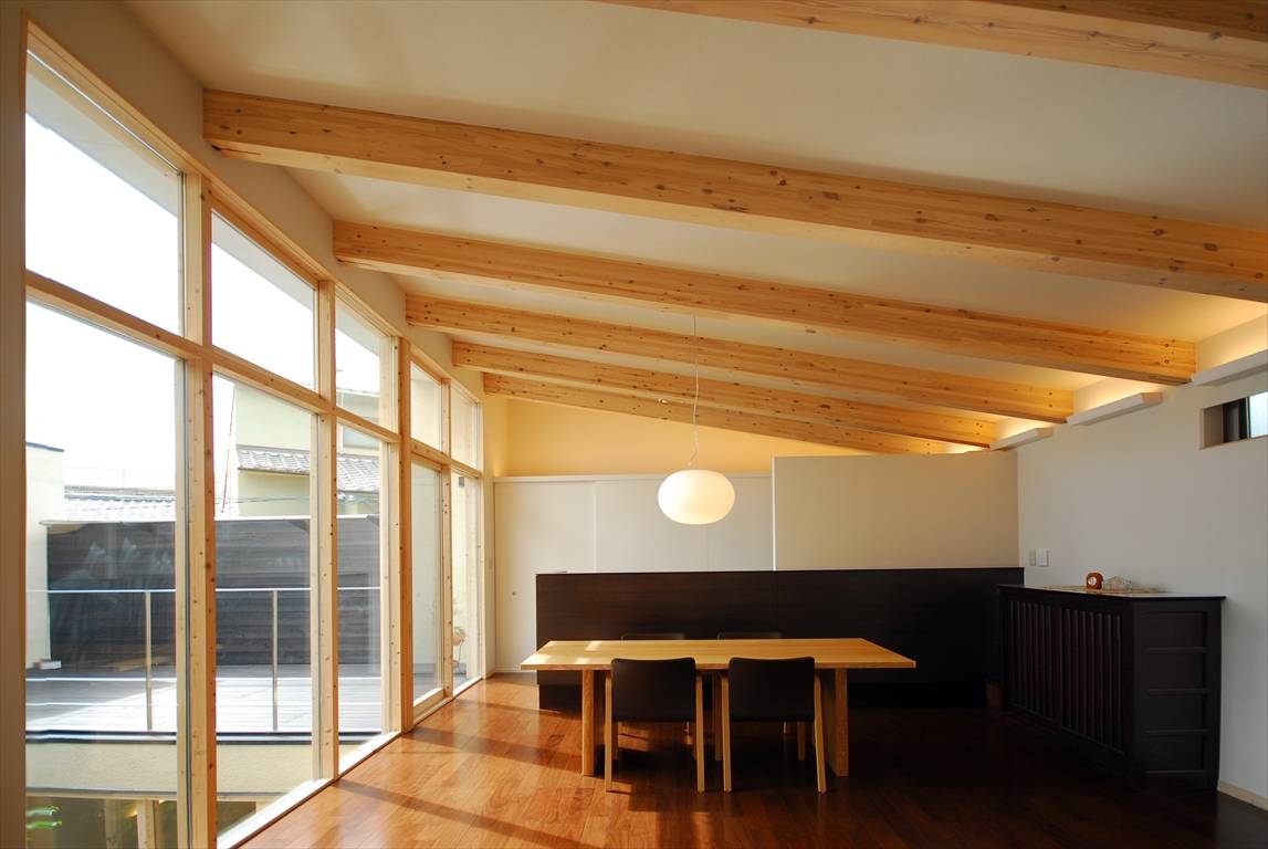 近隣住戸の窓位置を考慮しながら各部屋の窓位置を検討し、周囲の視線を気にすることなく 常に空を見ながら生活することを可能にしました。