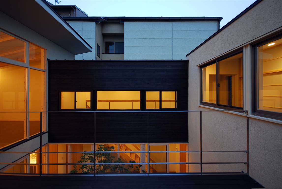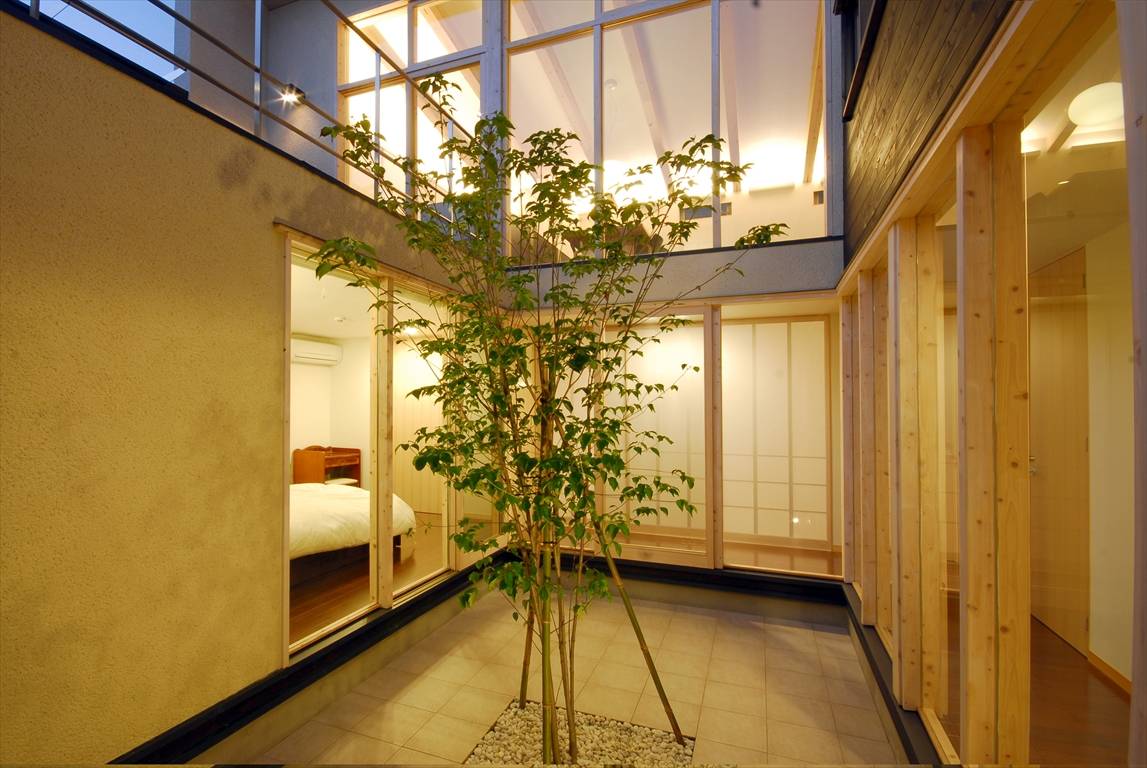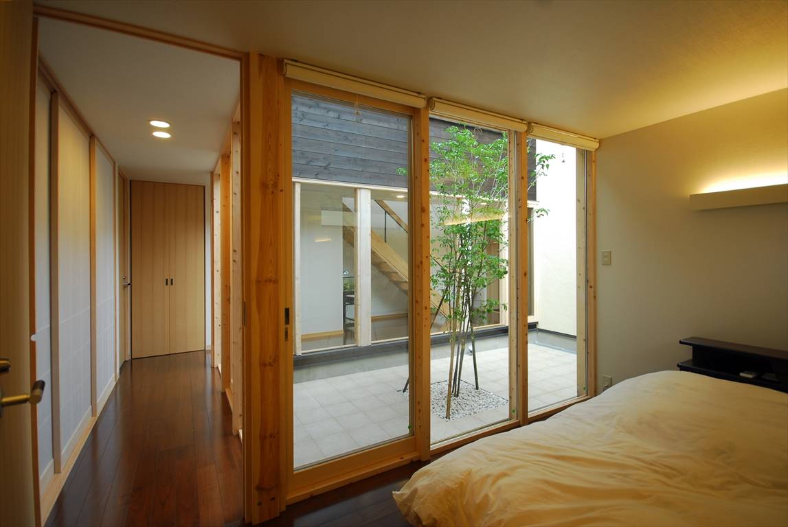 全ての部屋を中庭を囲むように配置し、中庭側に大きな開口部を持つ空間としました。家族が各自の部屋で過ごしていても、中庭を通して気配を感じることが可能です。