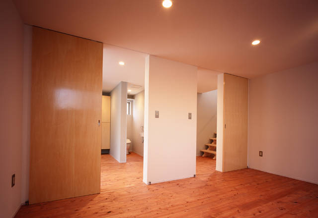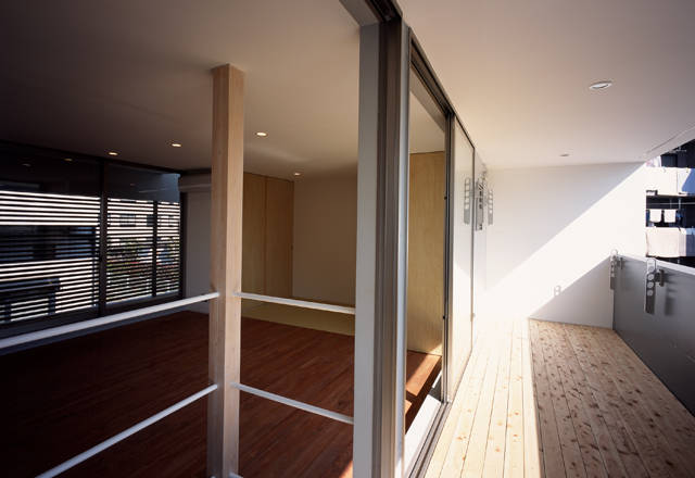 ●SU-HOUSE 16 cells 柏市に建つ戸建住宅である。閉じ過ぎず開き過ぎないようデザインされており、周辺環境と調和を保つ住宅である。2階LDKは南北の2面開口となっておりそれぞれにバルコニーがある。