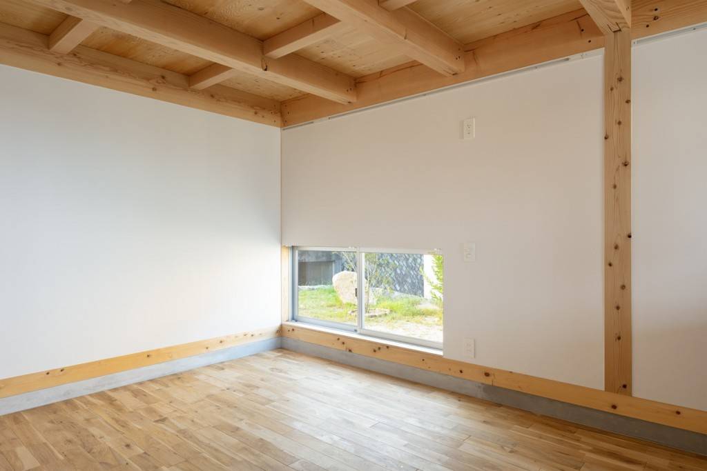 内部は、モルタル金ゴテ、板間、すのこ、畳敷きなど、生活する居場所に応じて床の素材を設えています。それらの場所がすべて回りの風景との繋がりの中でできています。