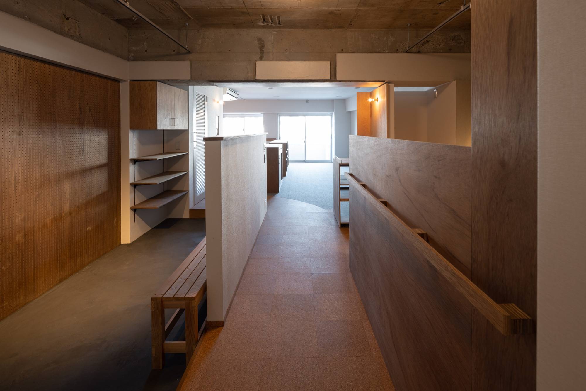 それは、置き場所を変えられる島のように点在する家具であったり、荒々しいスケルトンとなった躯体を和らげる仕上げになっていきました。