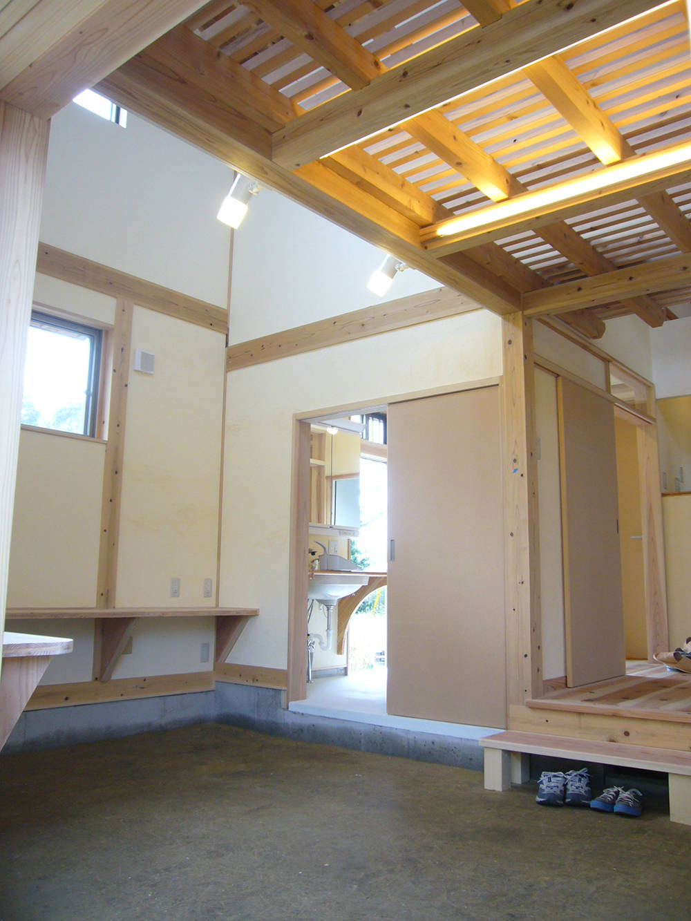きっかけは、木童という材木屋さんのショールームにこられた女性の『1000万円で木の家は出来ないですか』という一言でした。これを聞いた材木屋さんは、『そんなの無理だよね。』といって私に話しましたが、私が『そうでもないよ。考え方ひとつで出来ない事はないんじゃない。』と答えました。その後、この家づくりを私がお受けする事になり、同時に材木屋さんとの企画住宅の開発がスタートしました。