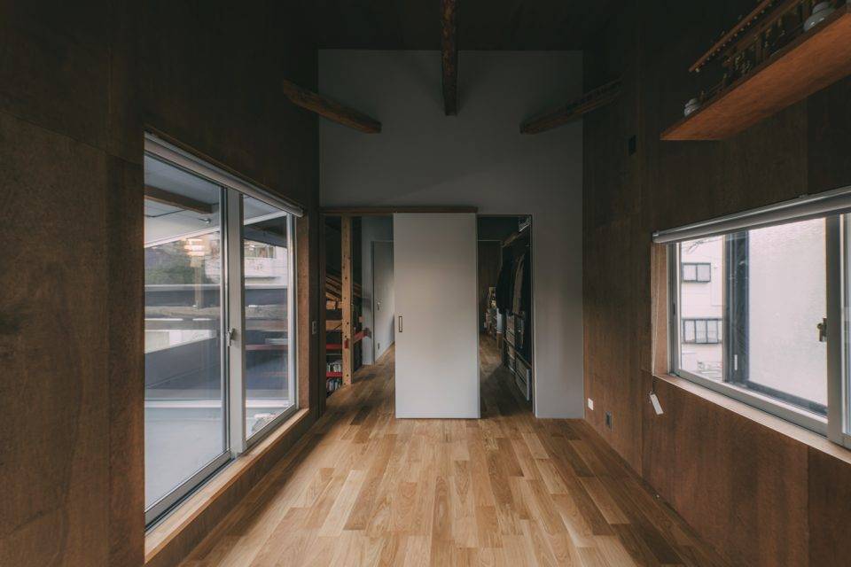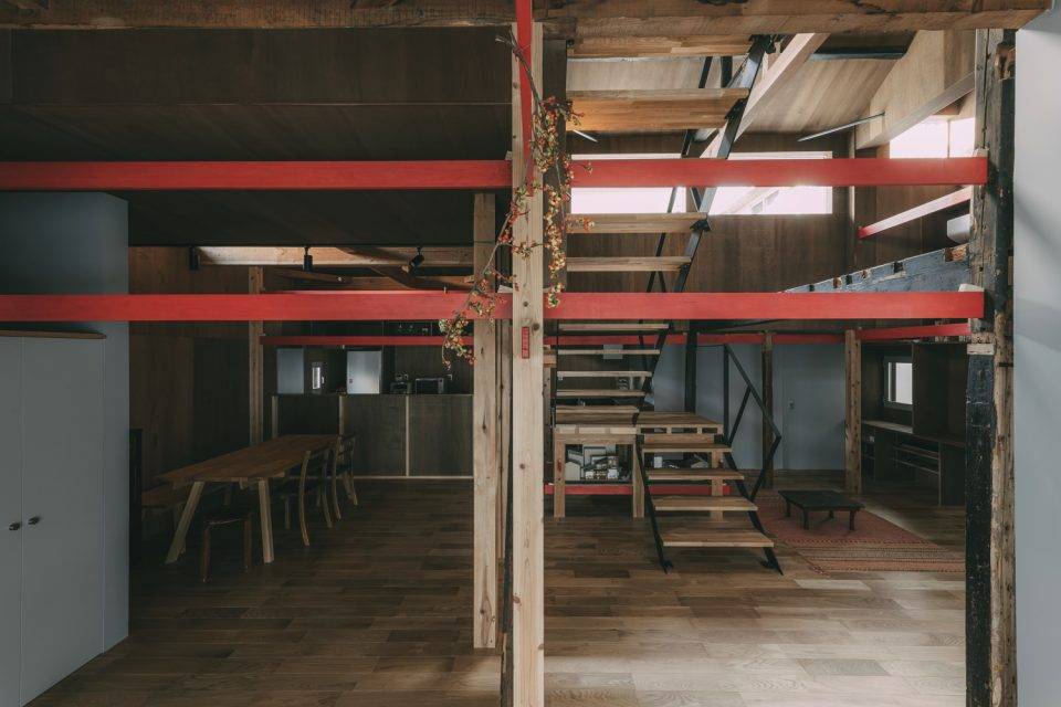 また貫が建物中央部を基点に各スペースを繋ぎながら、室用途に対応した機能をもち、照明や電気配線、カーテンや本棚、植栽、飾り絵など生活を支えるモノの拠り所となる。住まい手や状況とともに使われ方が更新され、暮らしに寄り添う「柔らかい構造」は生活の中に溶け込みながら安心を与え次世代へと受け継がれていく。