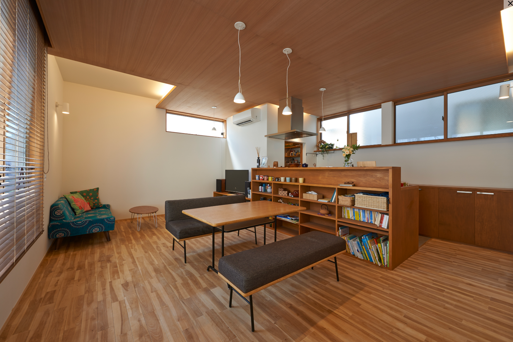 コンパクトな敷地ですが、建物の四隅に用途をもたせることにより、十字の抜けた空間がうまれ、小さな空間ながらも多様な居心地を生み出しています。