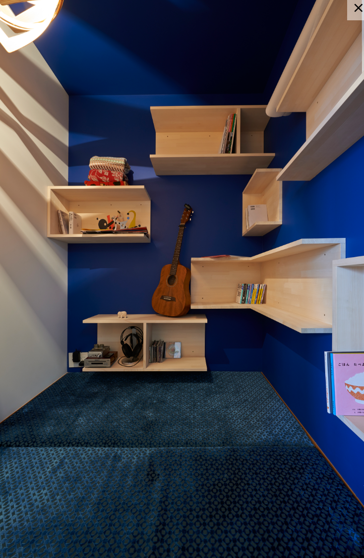 また、青色と白色で壁・天井を塗り分けた、ひとりゆっくり過ごせる一坪のこもり部屋。