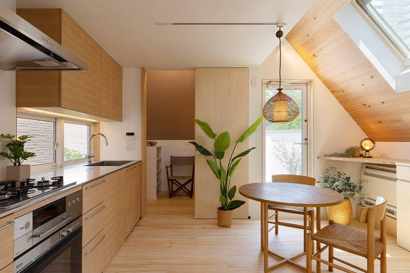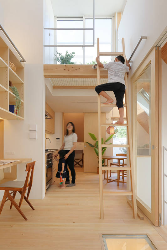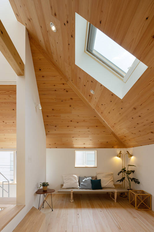 3階のLDKは、1つの空間にありながら、居場所によって 天井の高さや床のレベルが変化し、異なる雰囲気に感じられます。