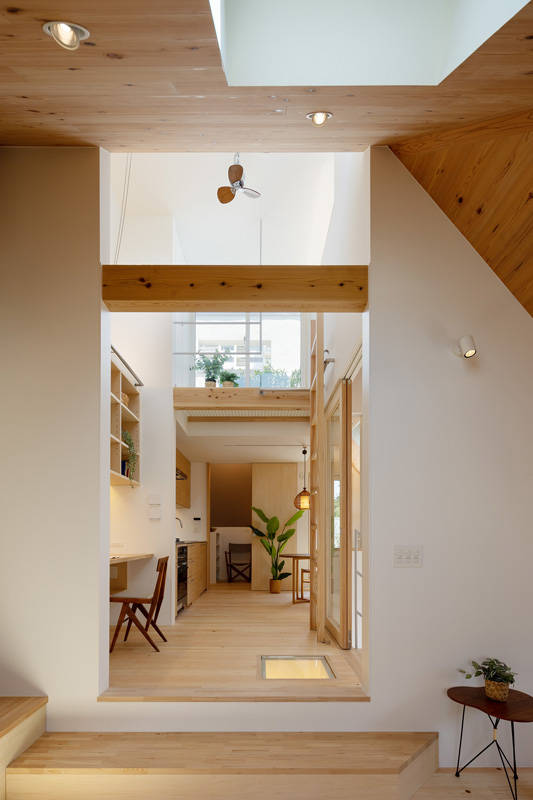 限られた敷地において、3人の子供部屋と必用諸室を確保するために、半地下を設け, スキップフロアの構成にて 明るさと広がりを感じさせるよう設計した住宅になります。