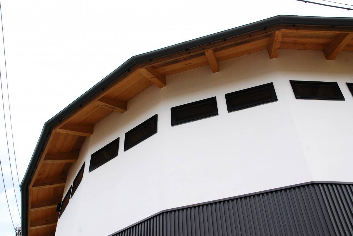 木組み・土壁の家 五角形の屋根は傘のような木組みが印象的...