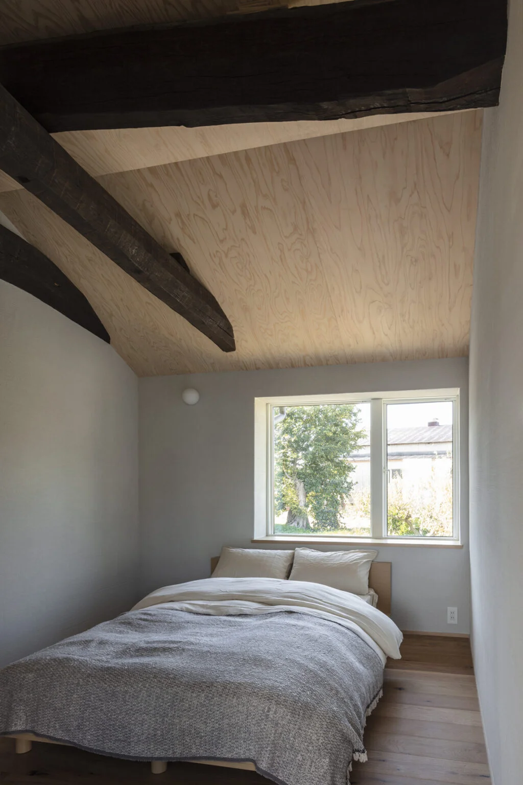 その大きな梁がこの建物を構成している一番の特徴であると考え、改修後の住宅となる部分でもできる限りその梁をそのまま現して使い、インテリアの要素とすることを考えた。