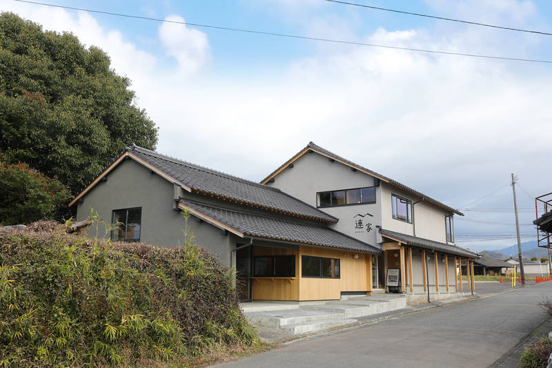 連家<れんか>は旧朝倉町の中心地に建つ築70年の精米所を、現代のライフスタイルに合わせて改修し、リノベーションの魅力や可能性を伝えるために建てられた古民家リノベーションのモデルハウスである。